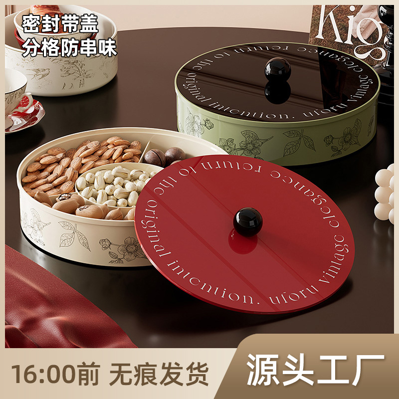 レトロなスタイルのフルーツプレート、ホームリビングルームのコーヒーテーブル、メロンシード、ピーナッツスナック、ドライフルーツボックス、食品グレードの多層コンパートメントキャンディボックス