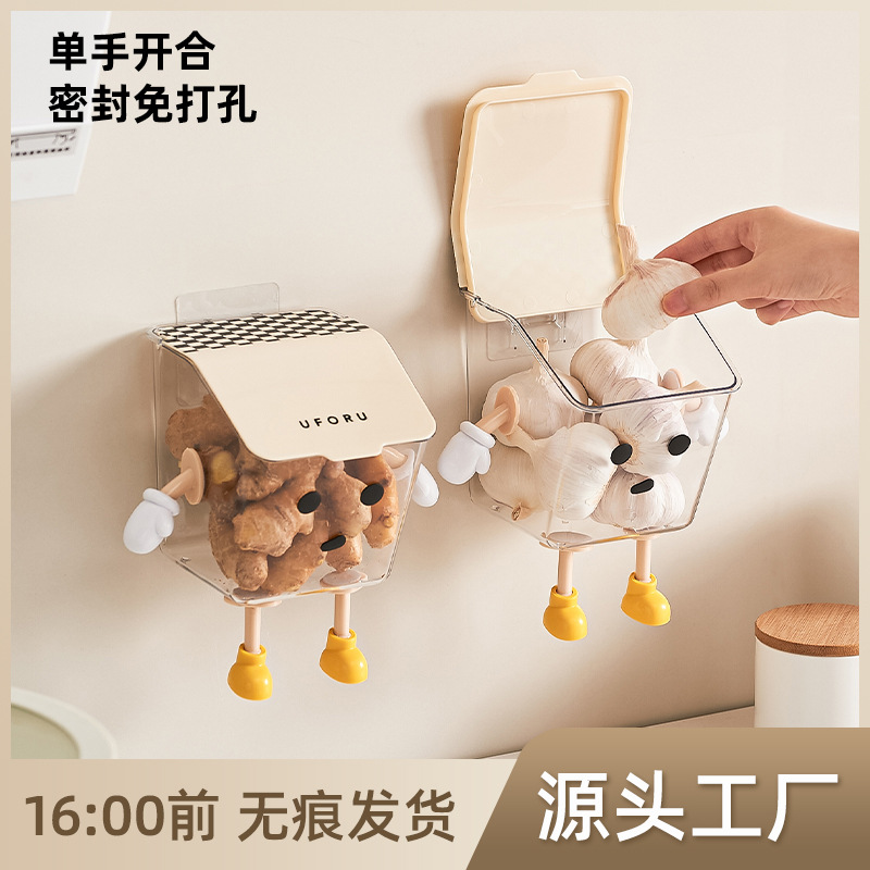 ネギのショウガのニンニクの収納箱の食品級の壁掛けの棚は穴を開けないで壁の上でかごのショウガのニンニクの調味料を掛けてかごを収納します。