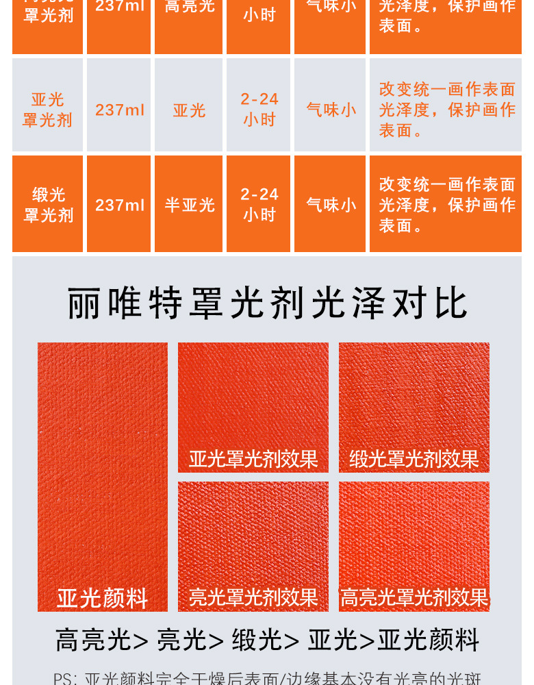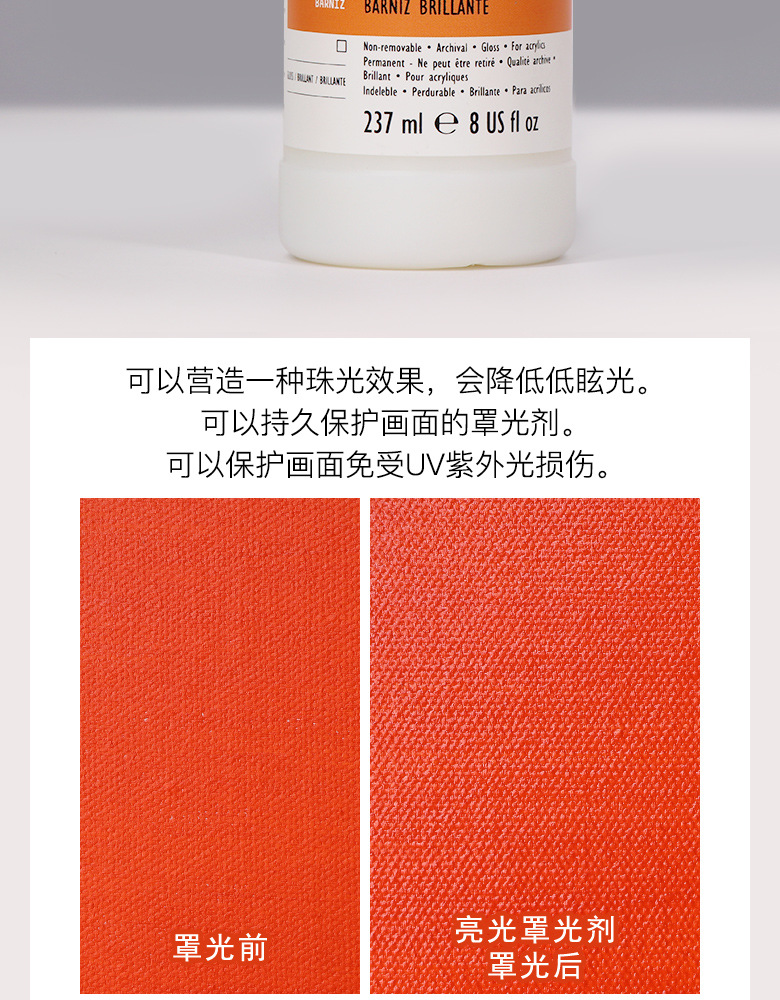 輸入丽唯特亜光ハイライトサテン光カバー光媒体効果流体画上光油保護液アクリル