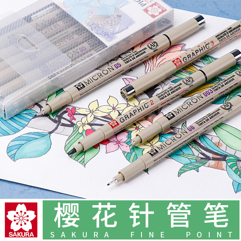 サクラxsdkグレー系針管ペン黒冷灰カラー一本防水デザインフック線手描き学生用漫画