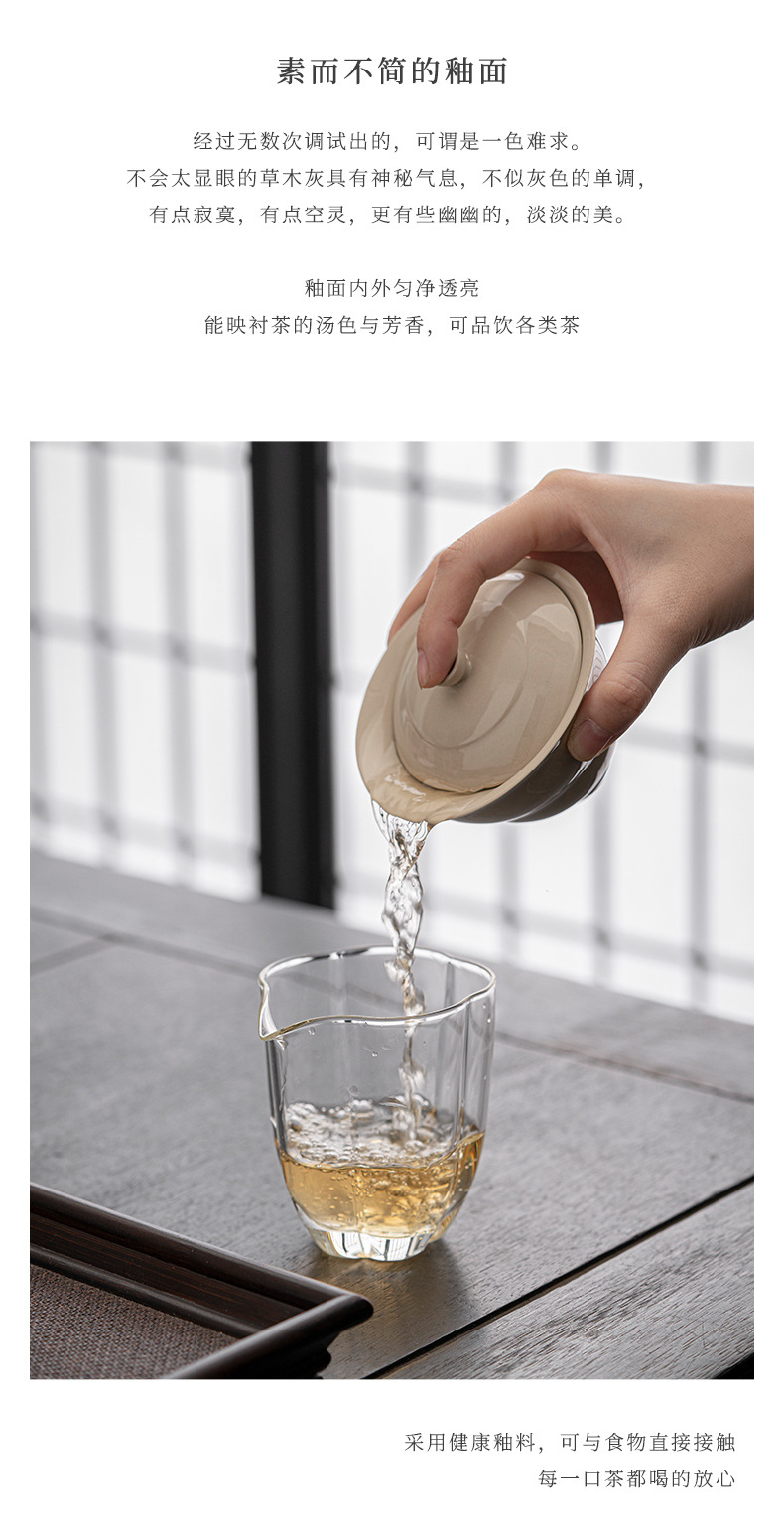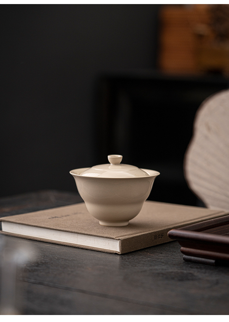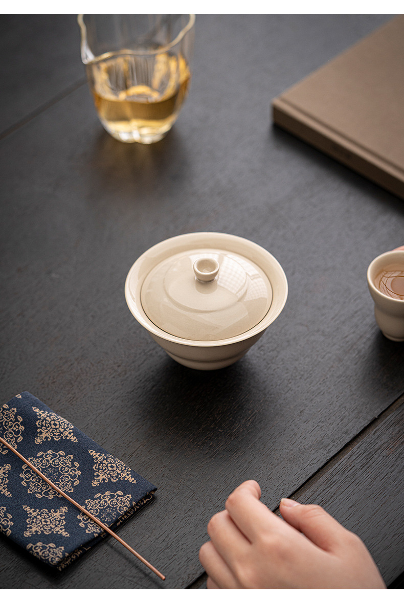 レトロな草木灰二才蓋ボウル家庭用シンプルなセラミックカンフーティーセットティーボウル水筒ティーカップベース