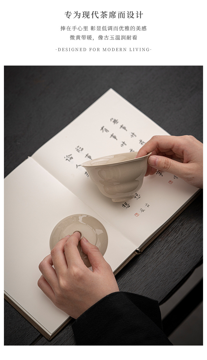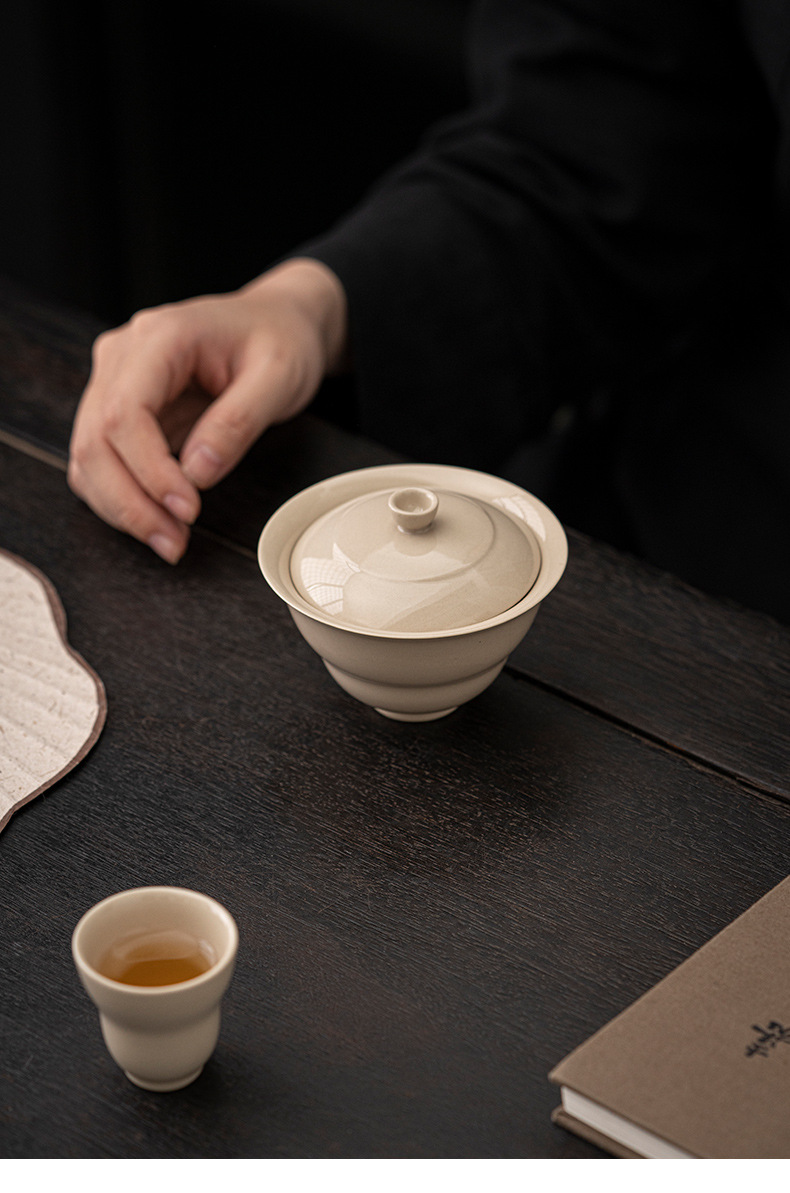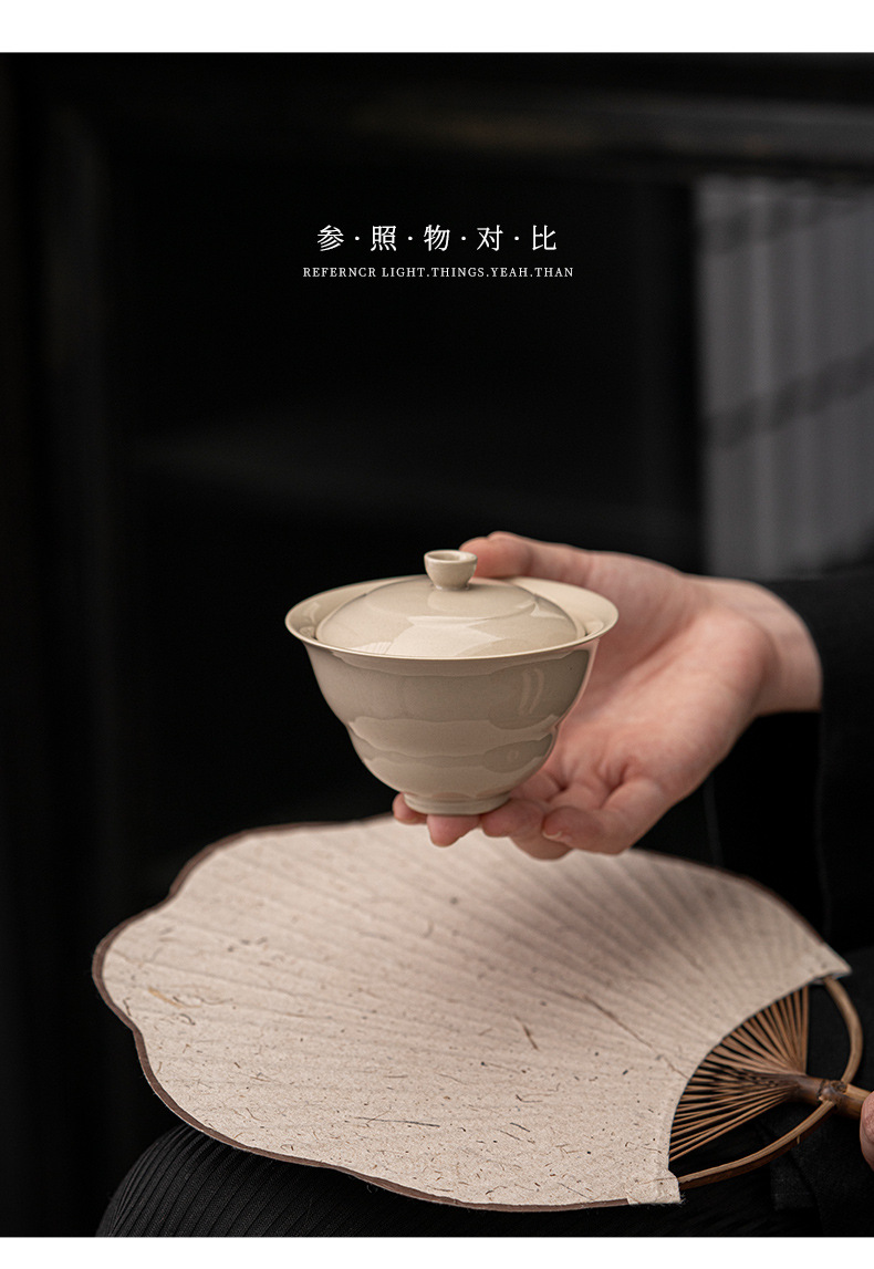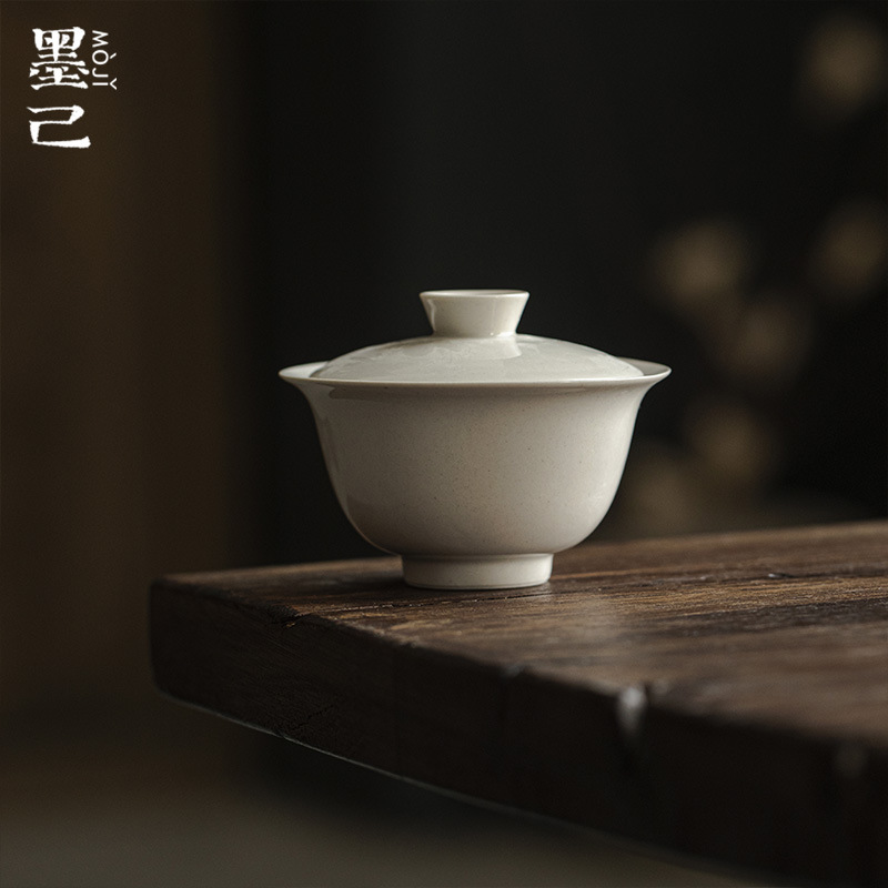 墨己草木灰古泥元宝蓋碗工夫茶器陶磁器薄胎不熱手茶碗家庭用蓋碗