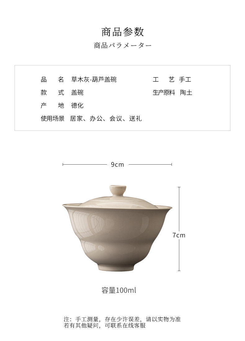 草木灰釉手作り薄胎二才蓋碗単品中国風レトロ岩茶茶碗家庭用功夫茶器耐熱