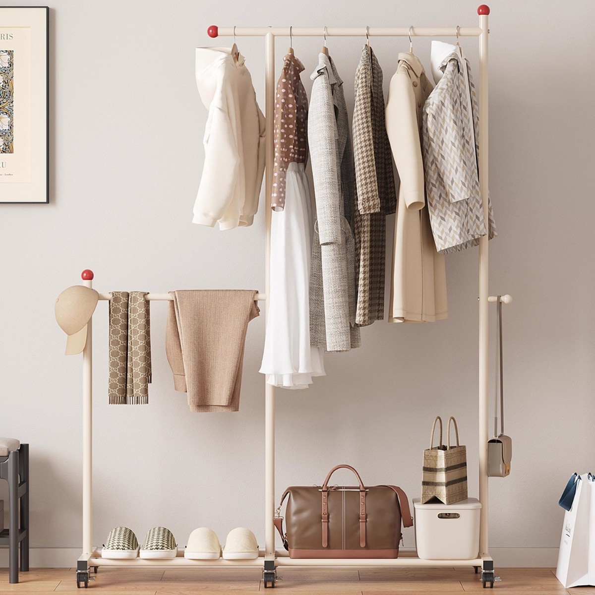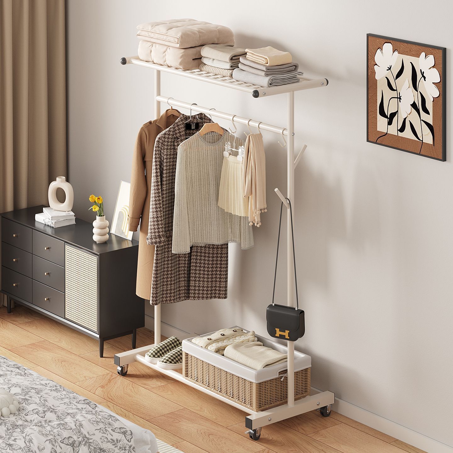フード棚が床に落ちた家庭用寝室のクリーム風が服を掛けている簡易室内寮は、日焼けした乾燥ハンガーを移動することができる