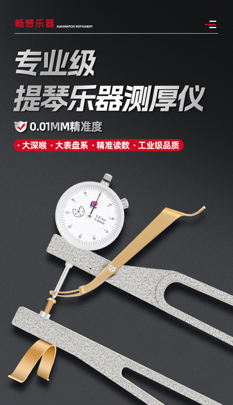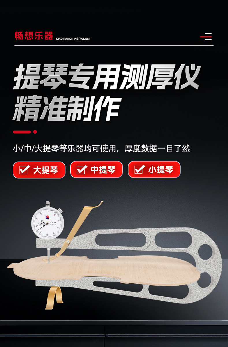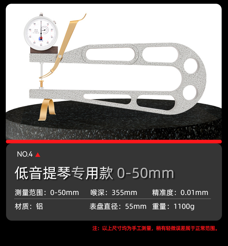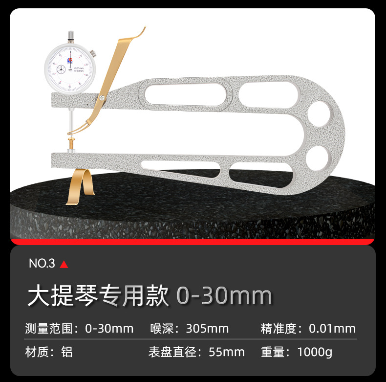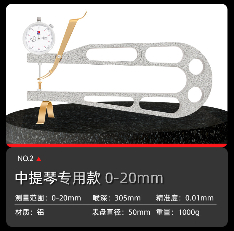 バイオリン厚さ計 小/大/ベースバイオリン用 耐衝撃ダイヤルゲージ 大型深喉厚さ測定器 板材測定ツール