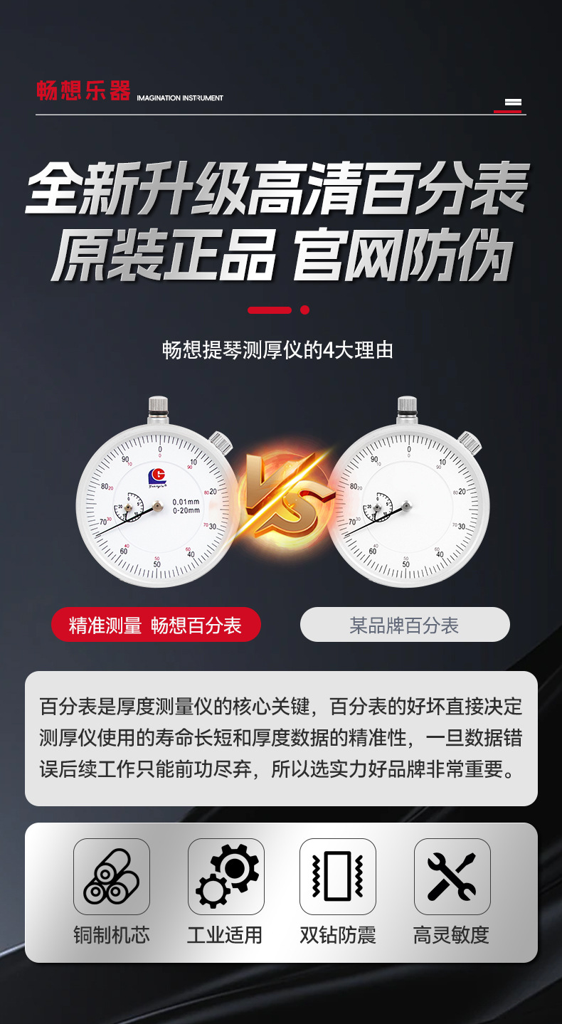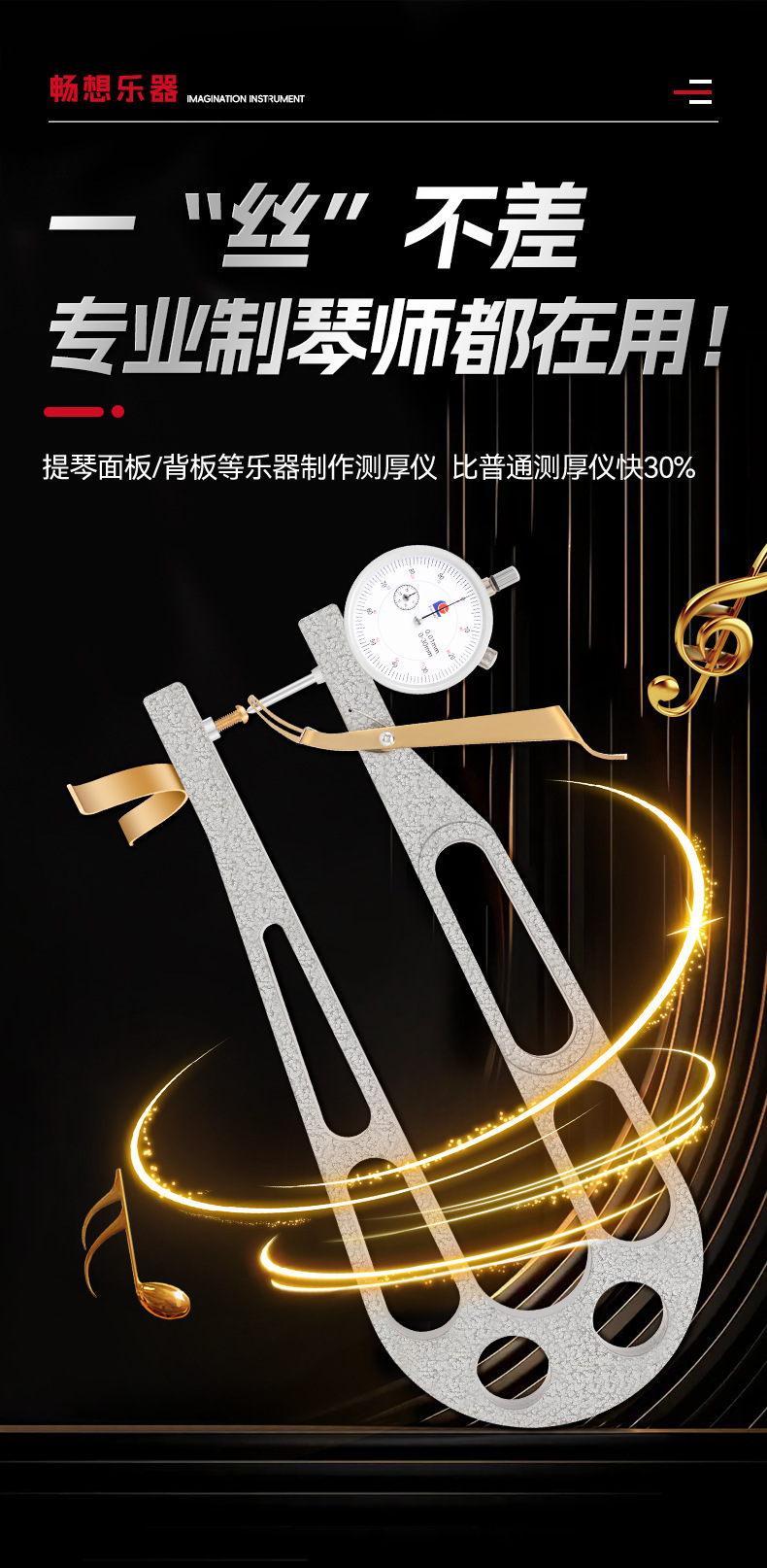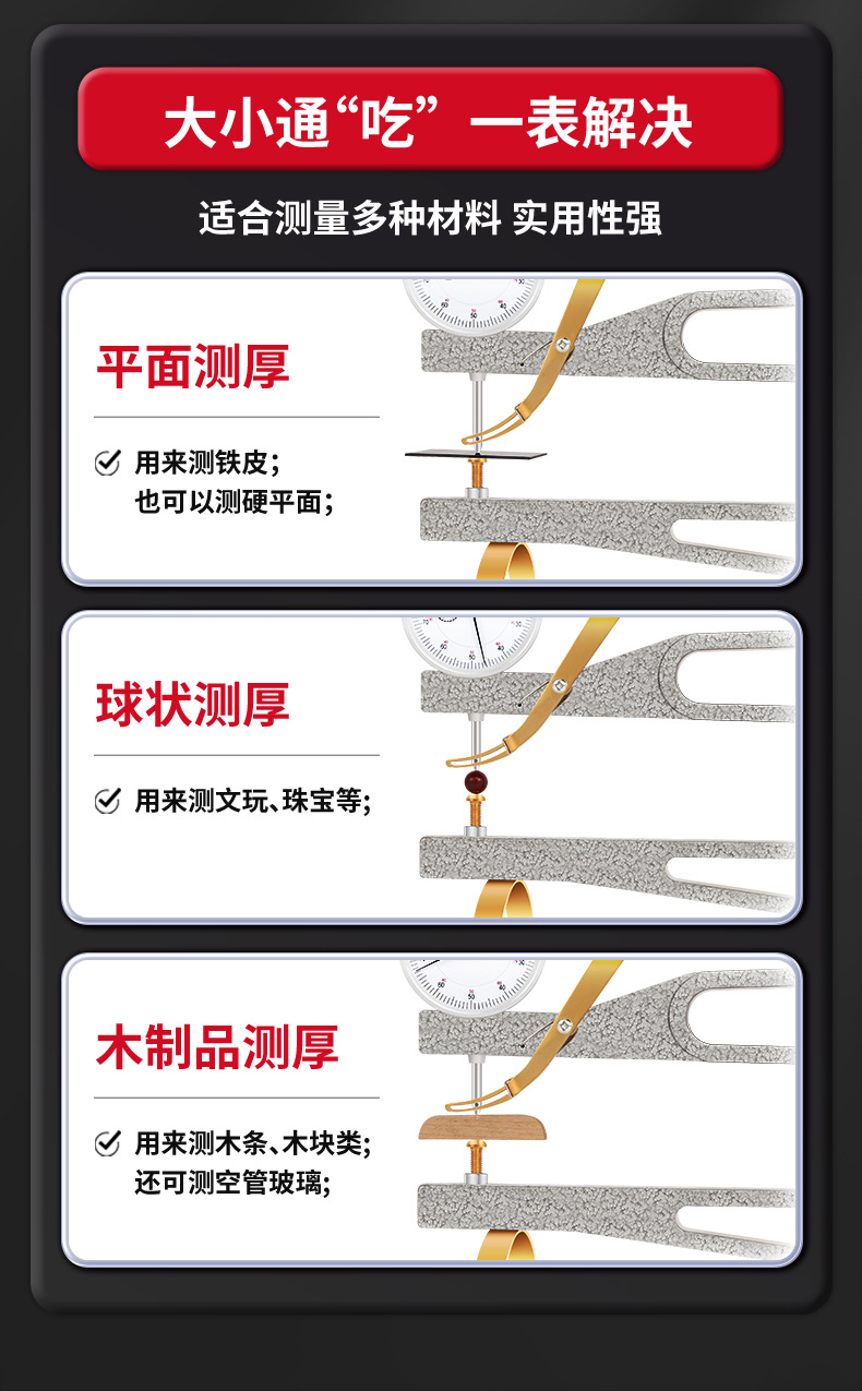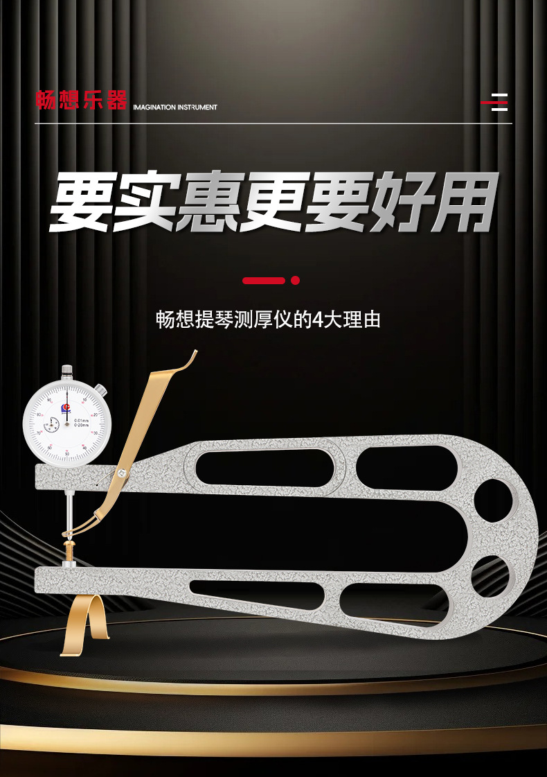 バイオリン厚さ計 小/大/ベースバイオリン用 耐衝撃ダイヤルゲージ 大型深喉厚さ測定器 板材測定ツール