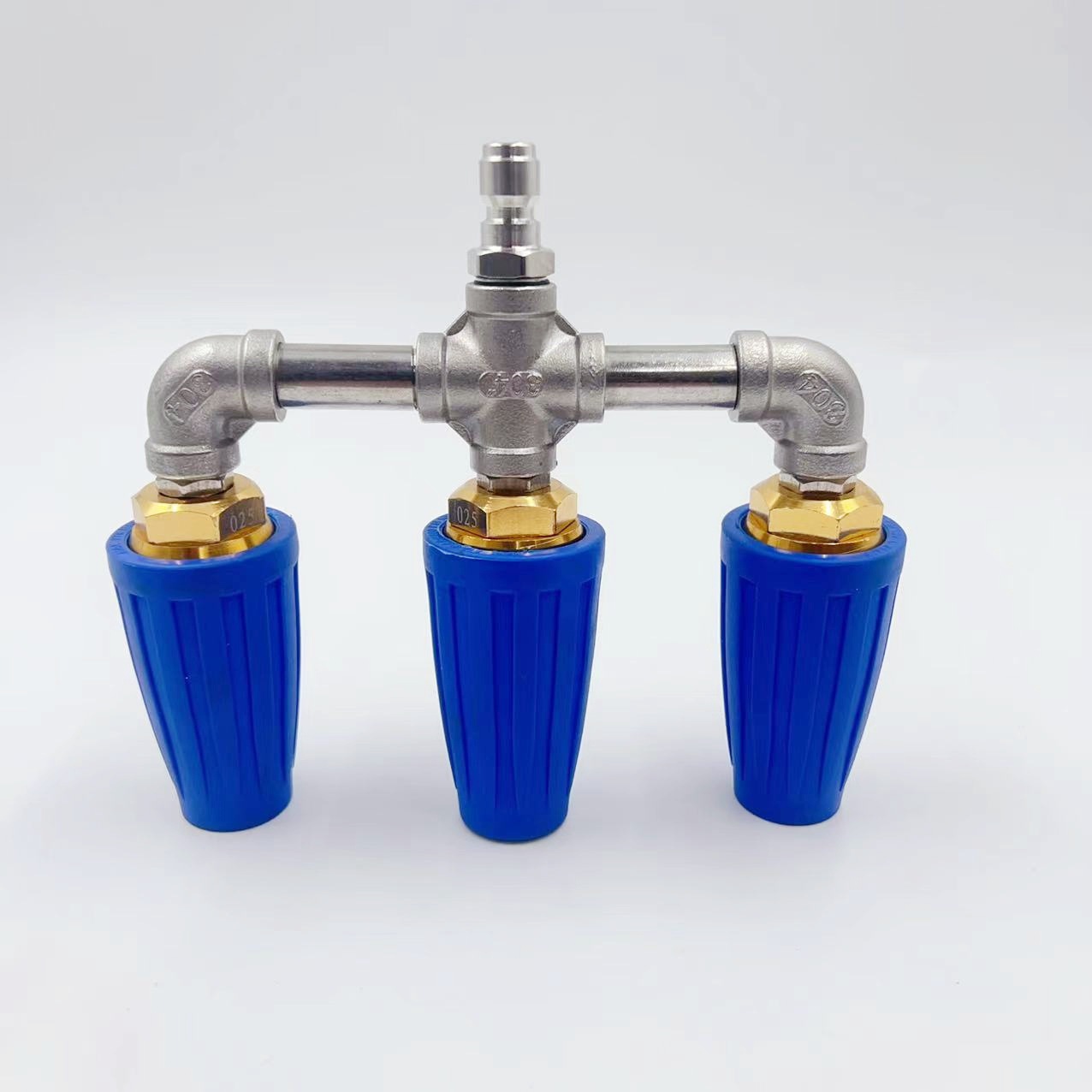 跨境高压水枪四头旋转喷头铝合金搭配四通不锈钢水管接头1/4 4000