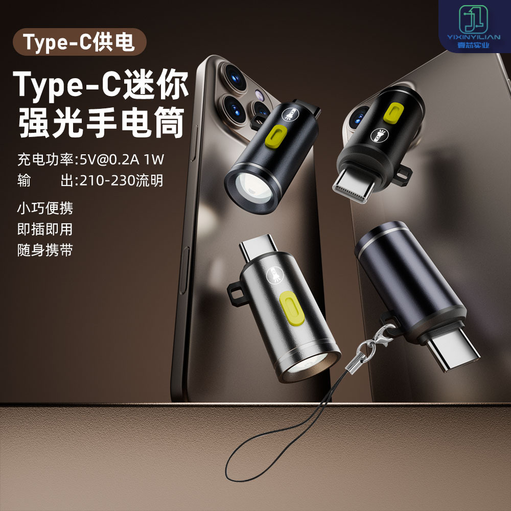 Type-cオス転送プラグアンドプレイ強光ポータブルアウトドアキャンプ緊急灯ポータブルミニ懐中電灯