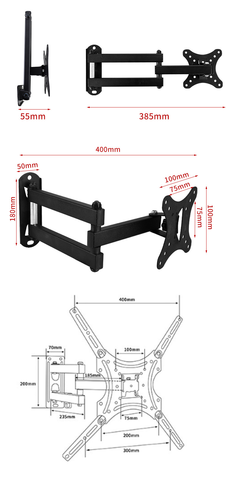 伸縮スイングテレビスタンド調整可能回転テレビハンガーp4 p6757テレビ伸縮ハンガー14-120インチ