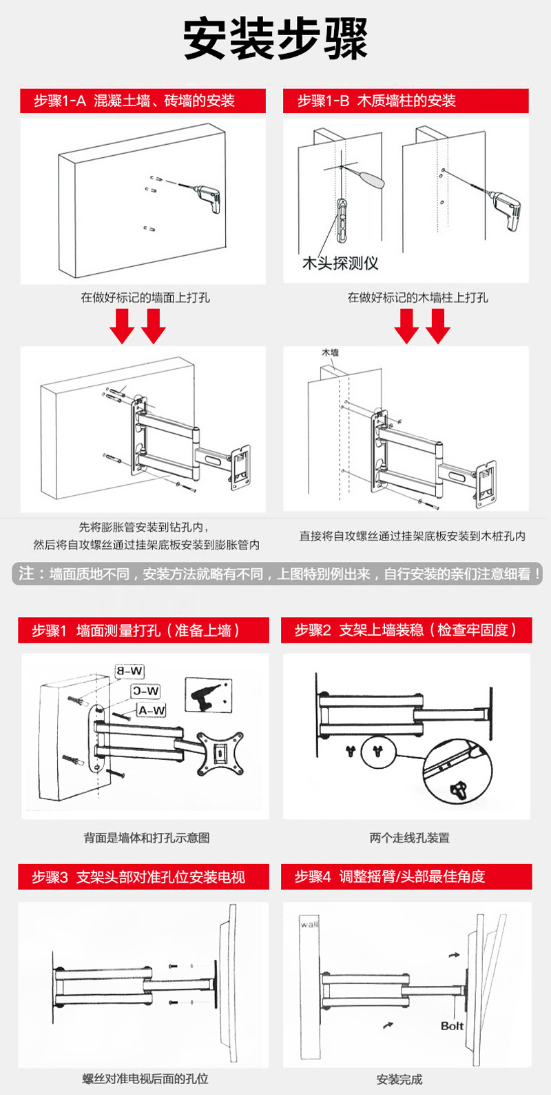 中视架电视机支架电视墙通用伸缩旋转壁挂折叠万向调节挂架