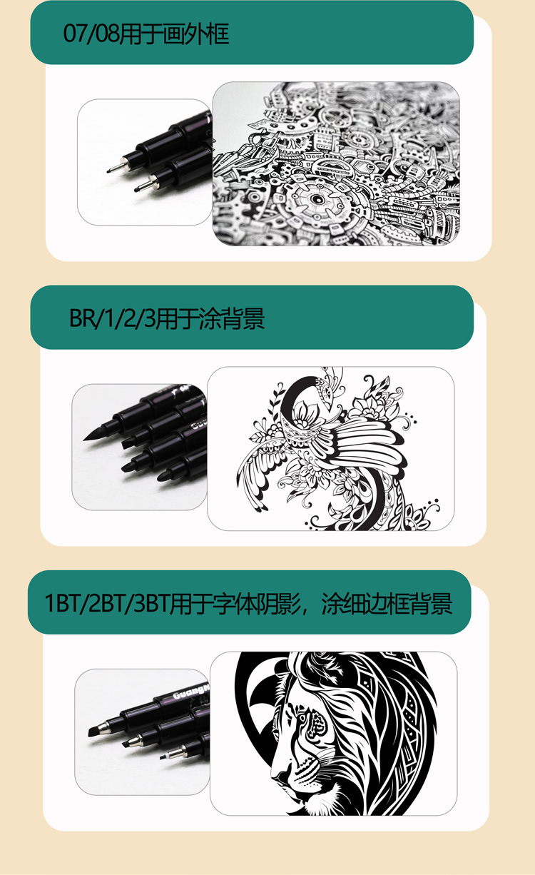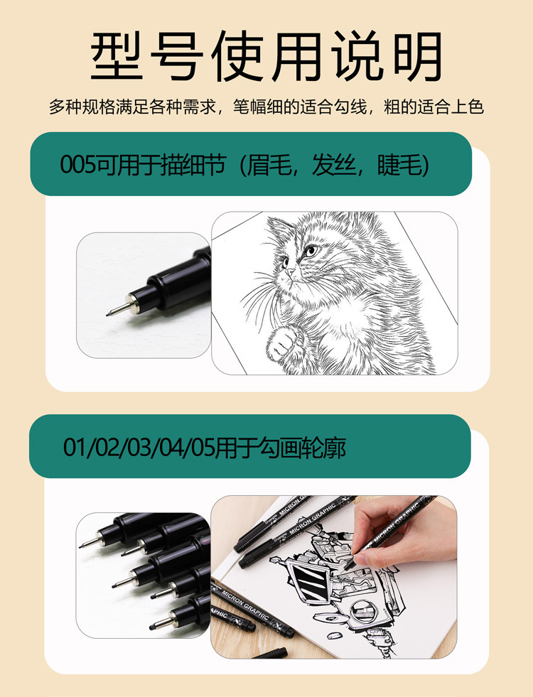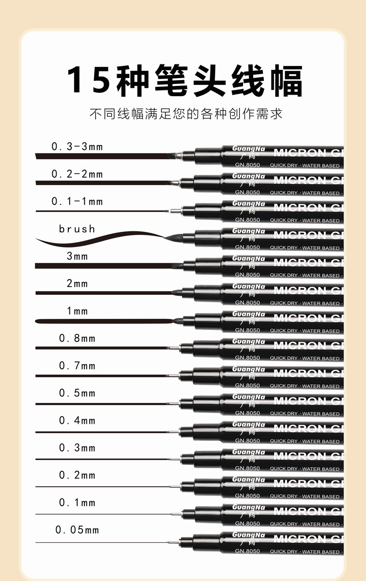 広納針管ペン8050防水線筆ネイルアート漫画ガンダム線アニメデザイン手描き線図ペン