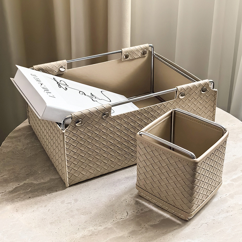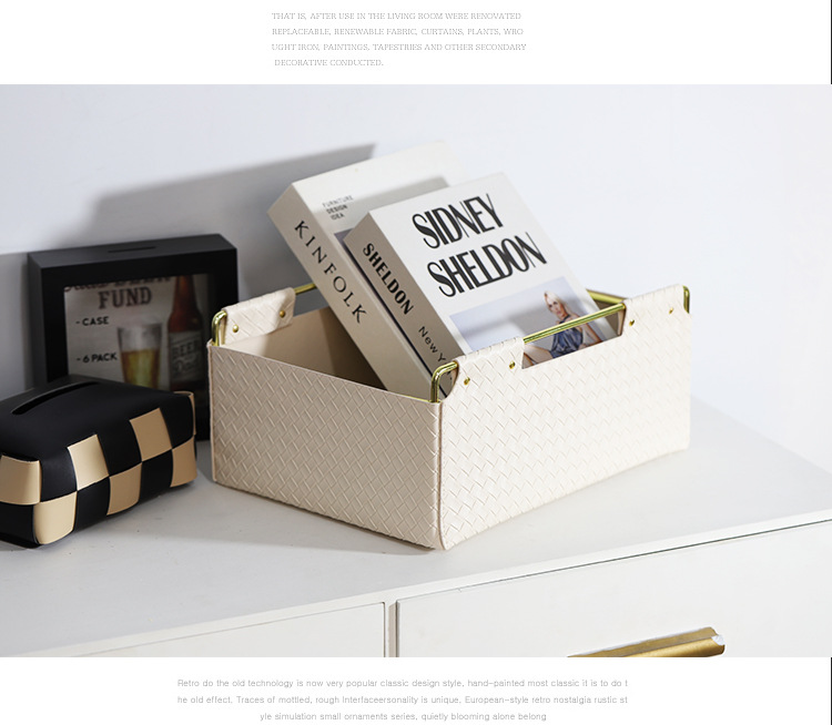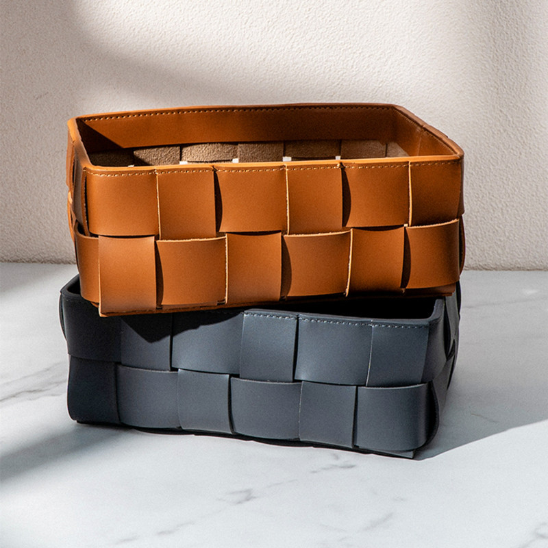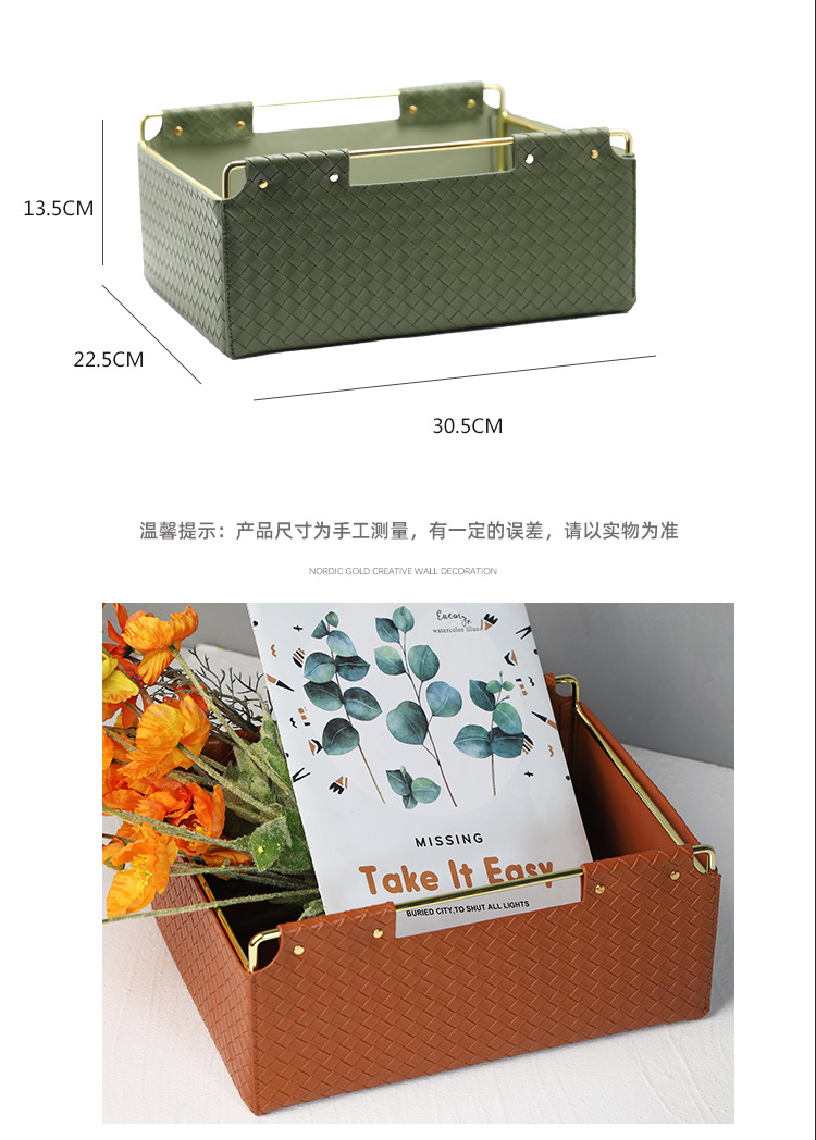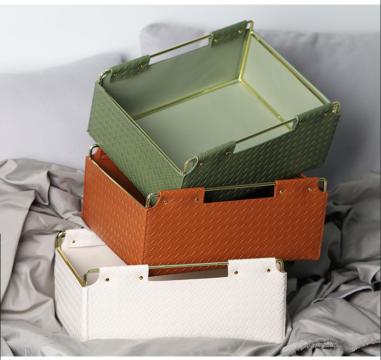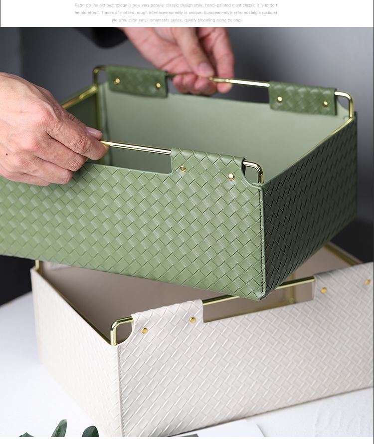 インライト高級スタイル雑貨デスクトップ収納ボックススナック化粧品収納バスケット大型レザー織りボックス