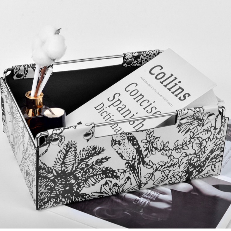复古法式创意玄关柜收纳盒收纳筐框家居收纳皮革轻奢高级整理盒