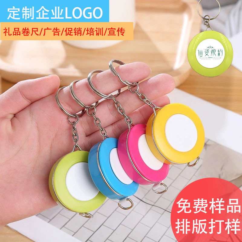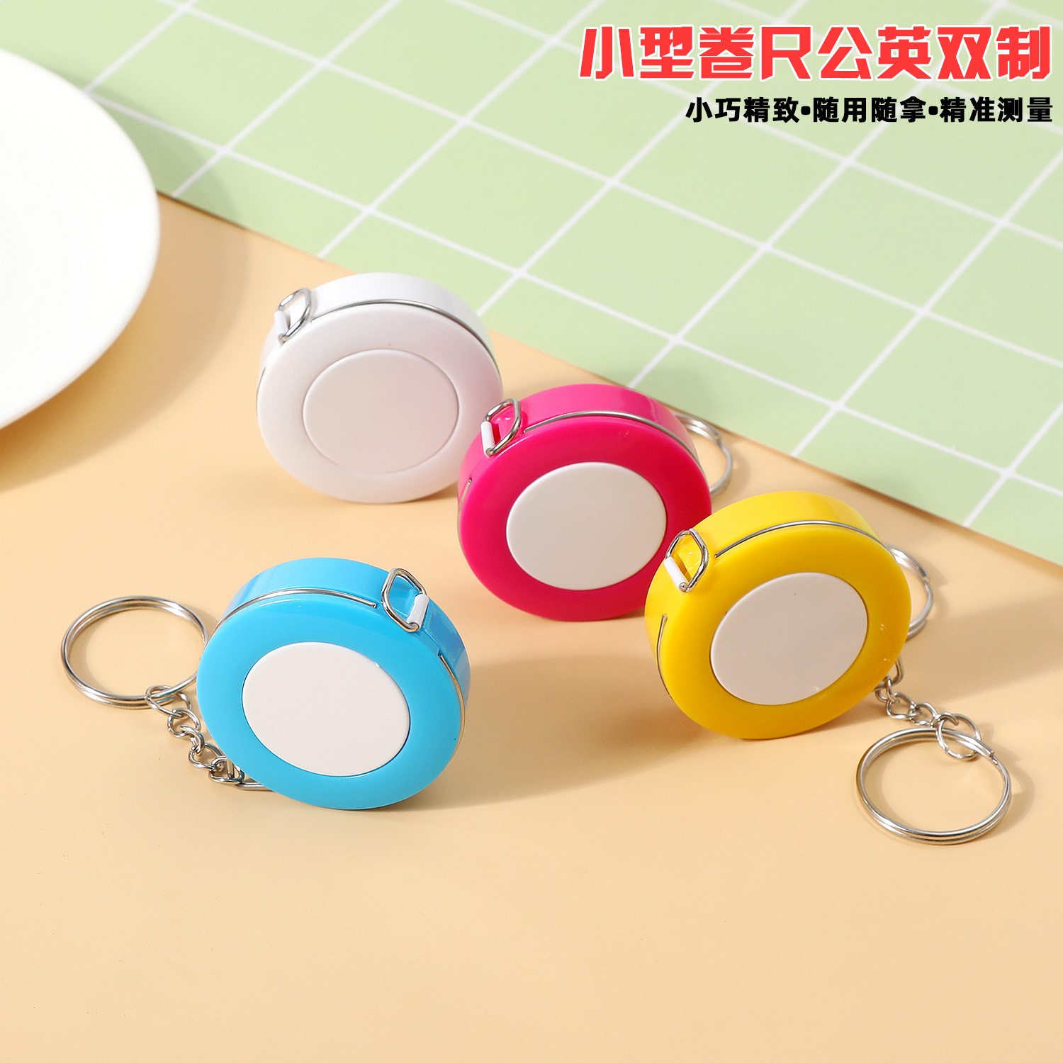 现货1.5米糖果色圆形小型卷尺钥匙扣自动伸缩可印LOGO量衣卷尺