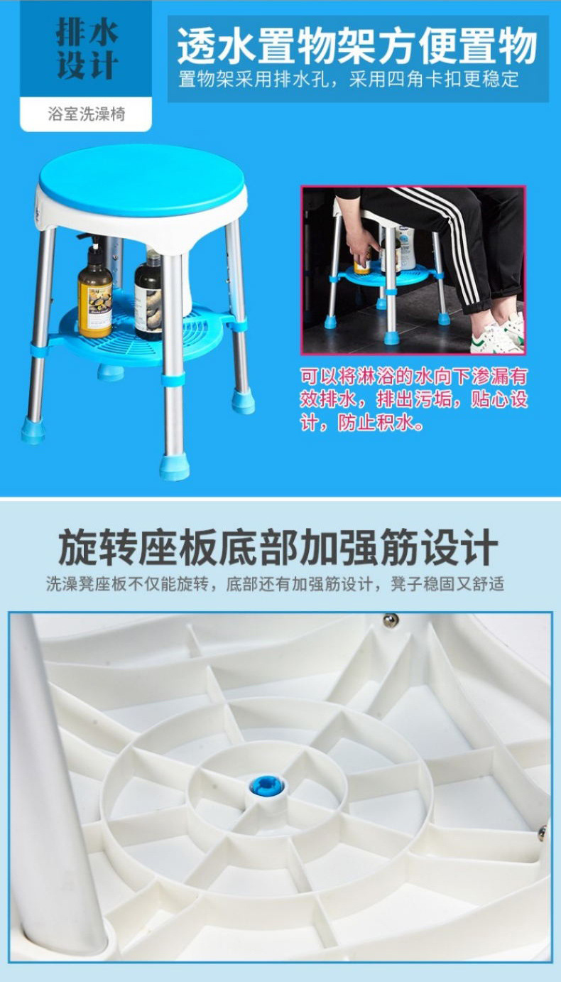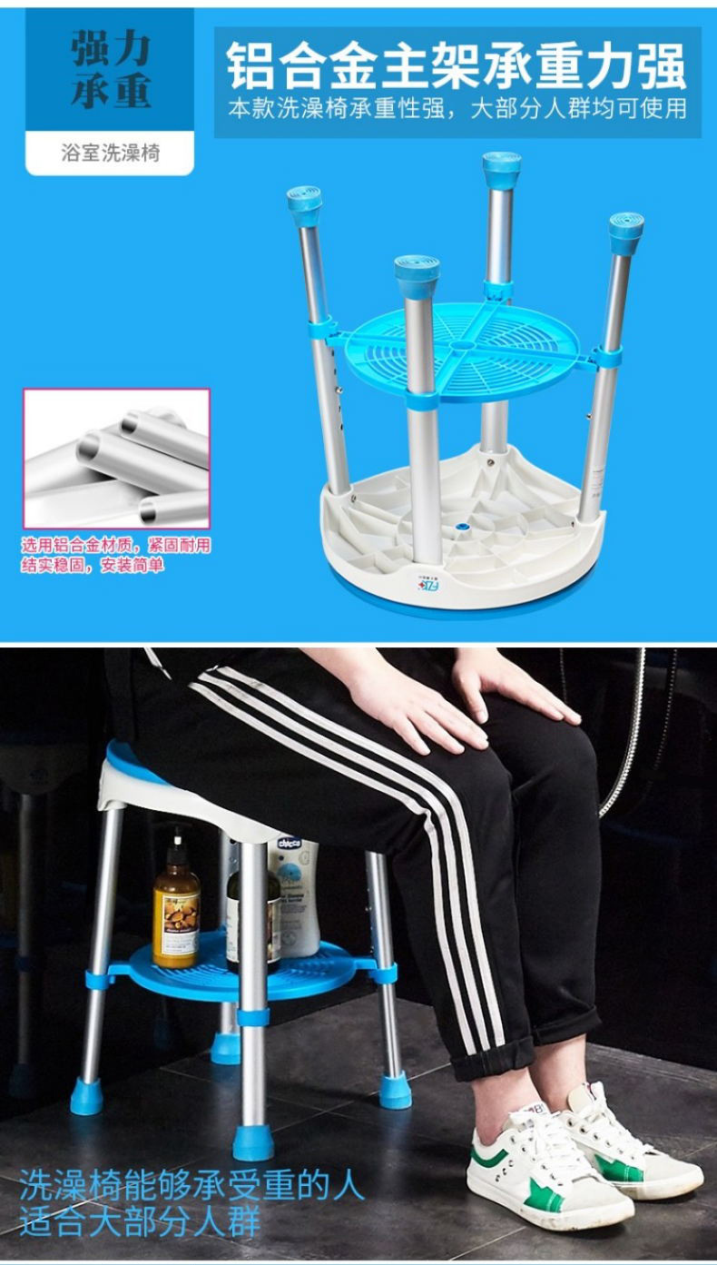 回転式風呂椅子アルミ合金風呂360度回転式風呂椅子老人滑り止め妊婦シャワー腰掛け