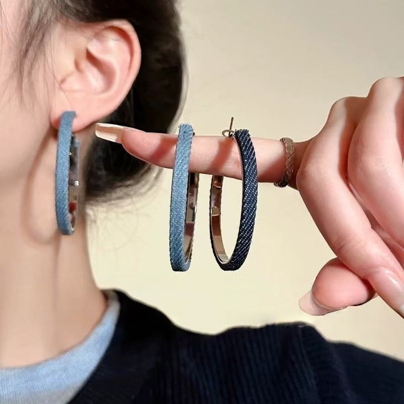 小众设计感牛仔大圈圈耳环女2025新款港风气质适合方圆脸的耳饰