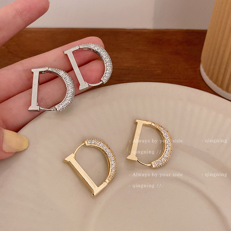 アルファベットDピアス小众デザイン感高级冷性风ピアスレディースins风ピアス甘いクールイヤリング高级感