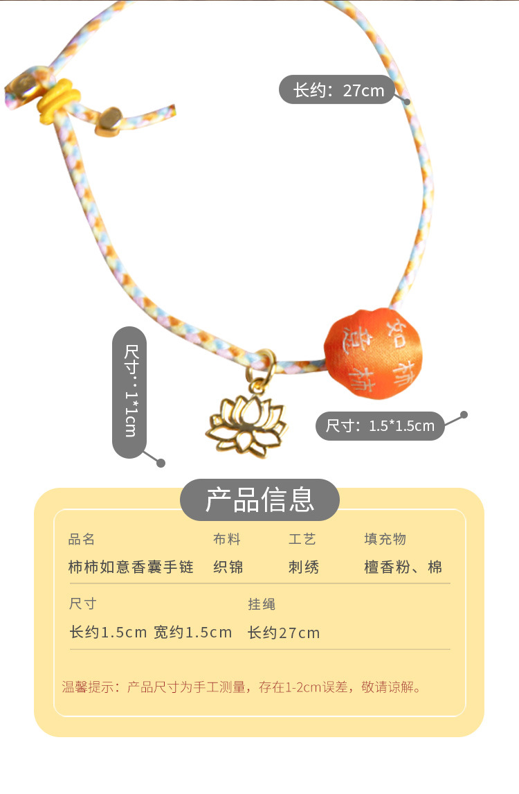 柿の如意の香の袋の小さい柿の香の包みのブレスレットの平安のシンボルの新型の誕生日の贈り物のカップルの手の縄は男の彼女に送ります。
