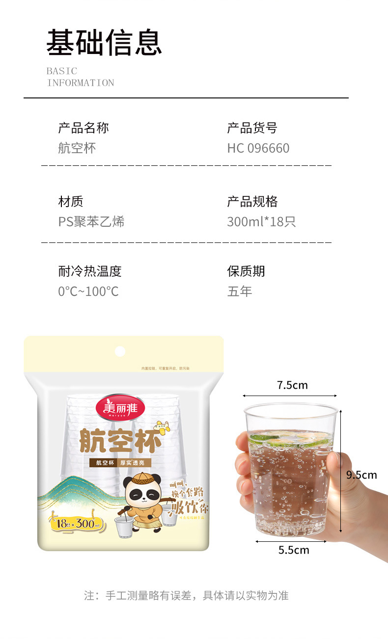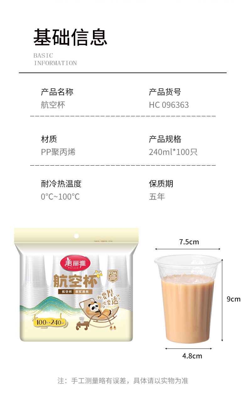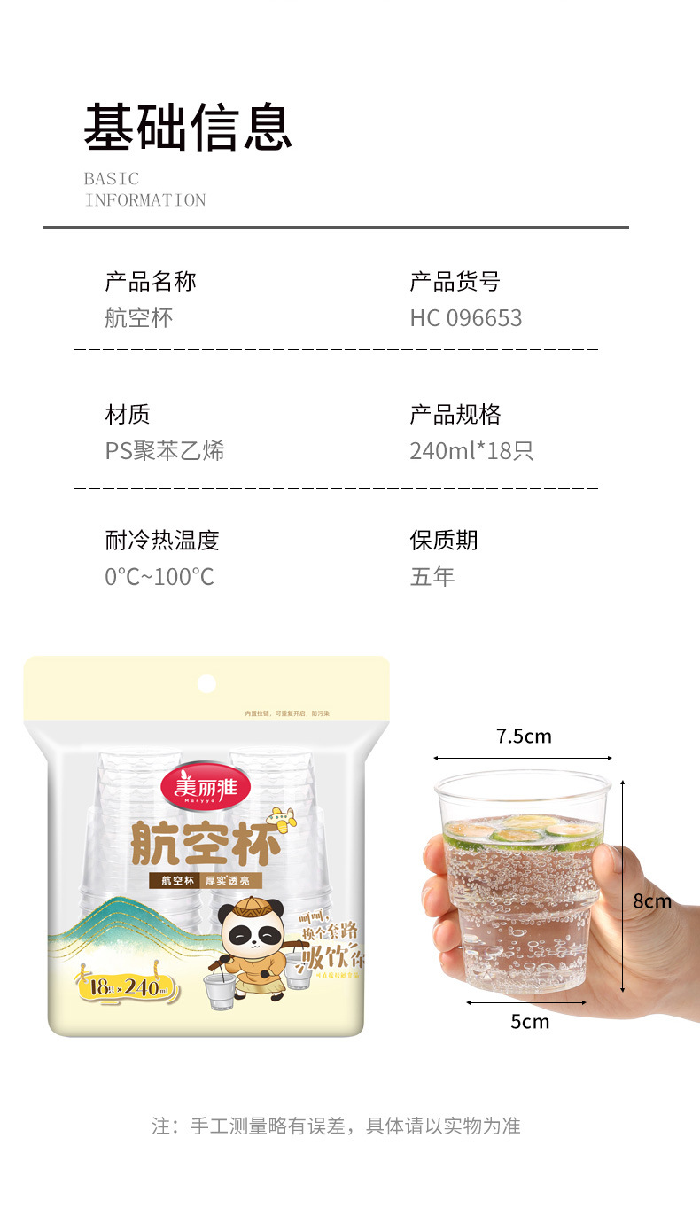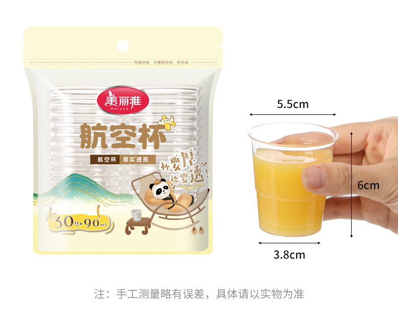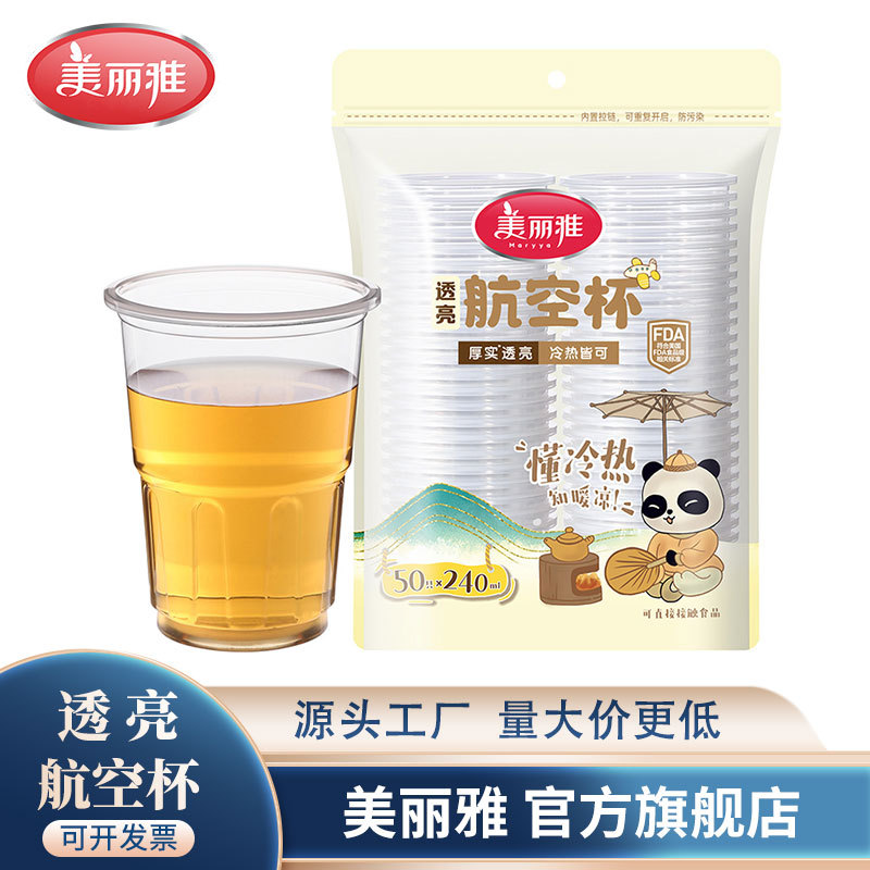 美雅PS航空カップ使い捨て厚手耐熱カップ家庭用プラスチックカップ箱詰め水カップ卸売