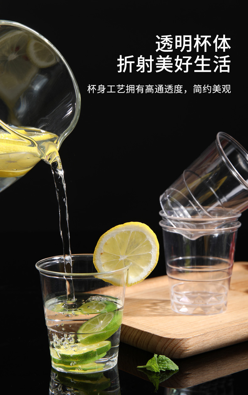 【美麗雅】カップ透明使い捨てプラスチックカップ透明カップを共有して、耐熱を厚くして変形しにくいデパート