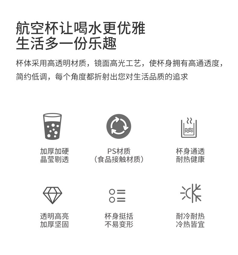 美しい雅は一度に厚くて硬い航空杯の食品級のプラスチックの杯の披露宴の家庭用業務用の水飲みの杯の卸売りをプラスします。
