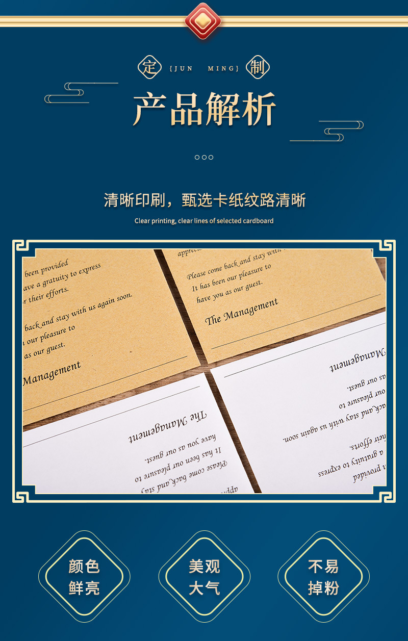 高級ホテルホテルのカードカバーホテルの民宿ビジネス専用会員カードの紙袋はロゴを印刷して卸売りすることができます。