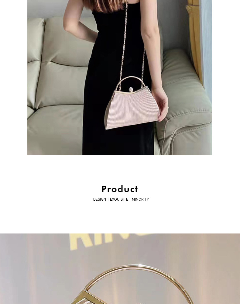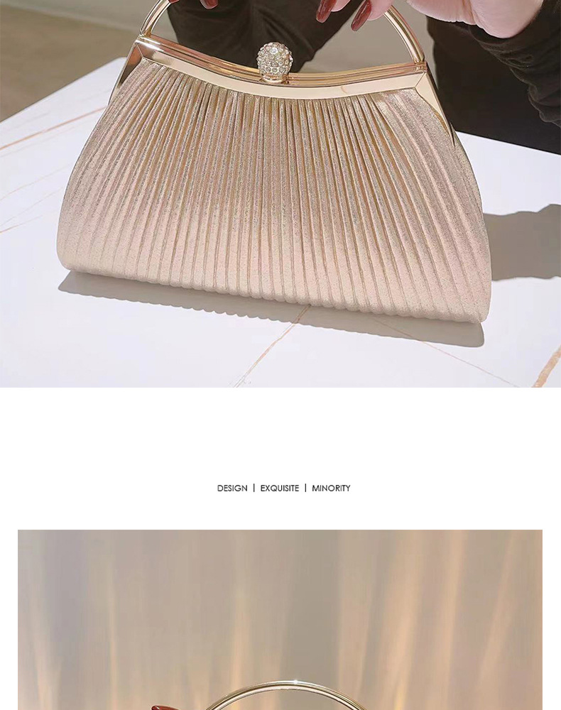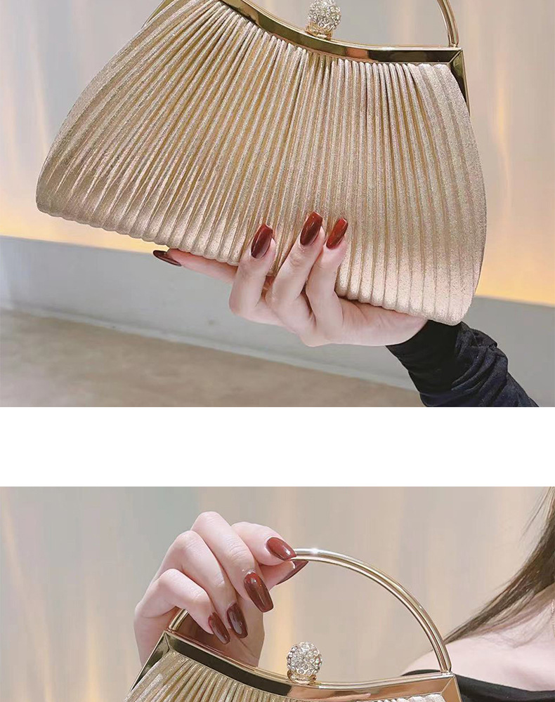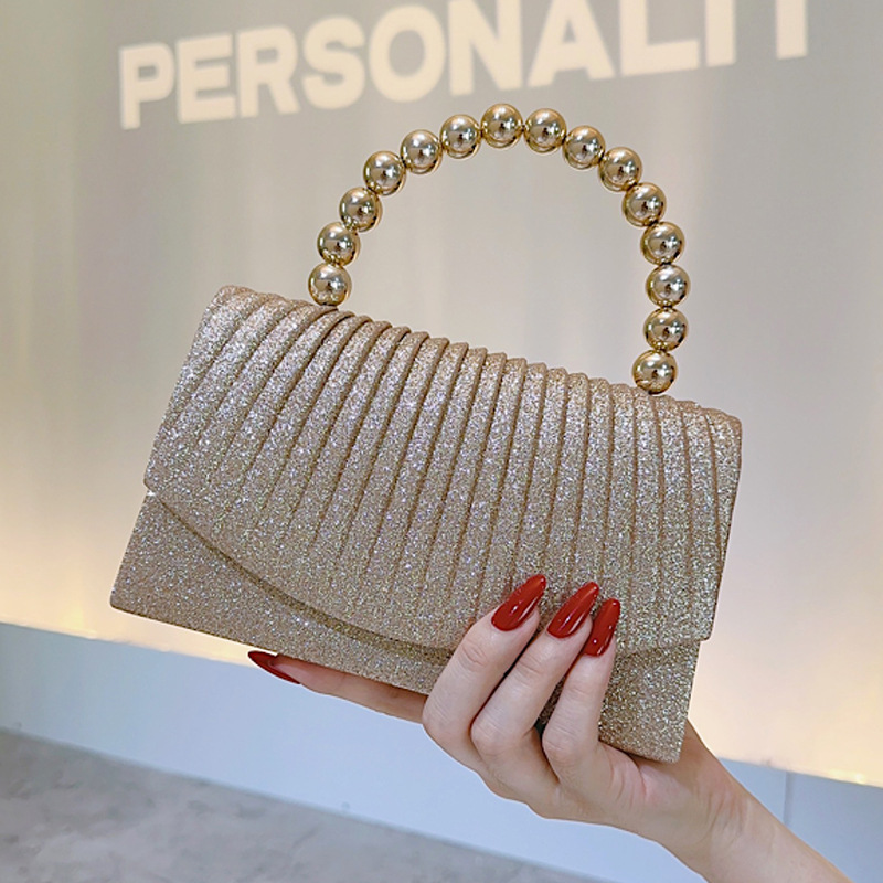 クロスボーダー新作ゴールドプリーツ高級イブニングバッグ、ハンドバッグ、ショルダーバッグ、チェーンバッグ、パーティー、結婚式、社交界の女性向けバッグ