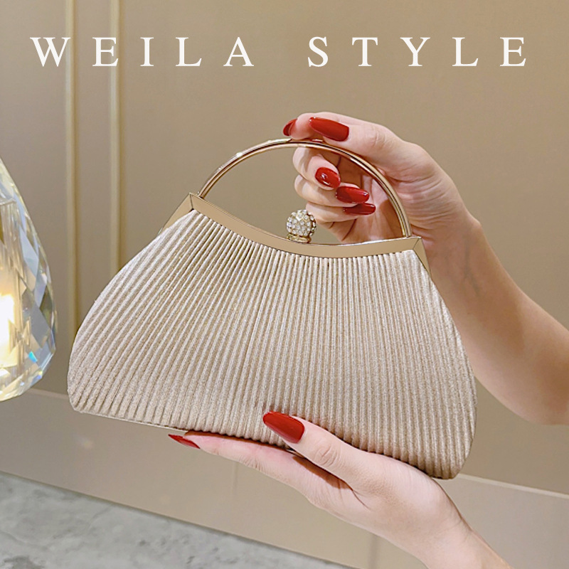 秋冬のクロスボーダープリーツサテンイブニングバッグ、レディースイブニングクラッチバッグ、チャイナドレスバッグ、高級感のある宴会用ハンドバッグ