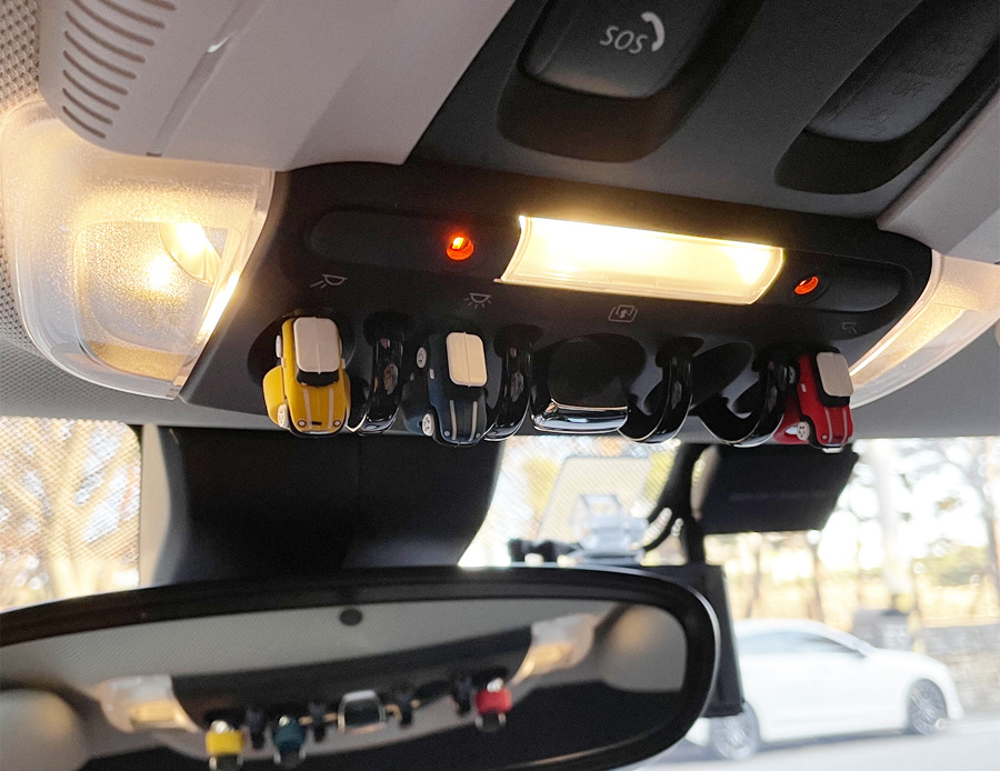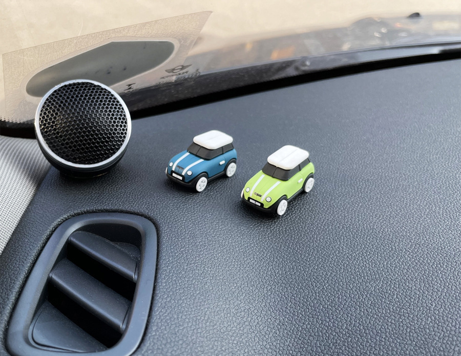 Bmwミニクーパーの自動車計器台の中で小さい置物のミニ装飾車の内装のおもちゃの模型を適用します。