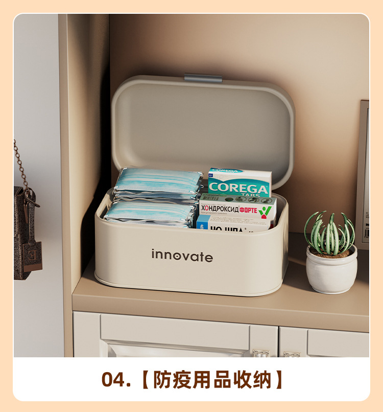 高颜値玄関収納ケースマスク客間デスクトップスナック化粧品寝室蓋付き入戸収納ケース薬箱