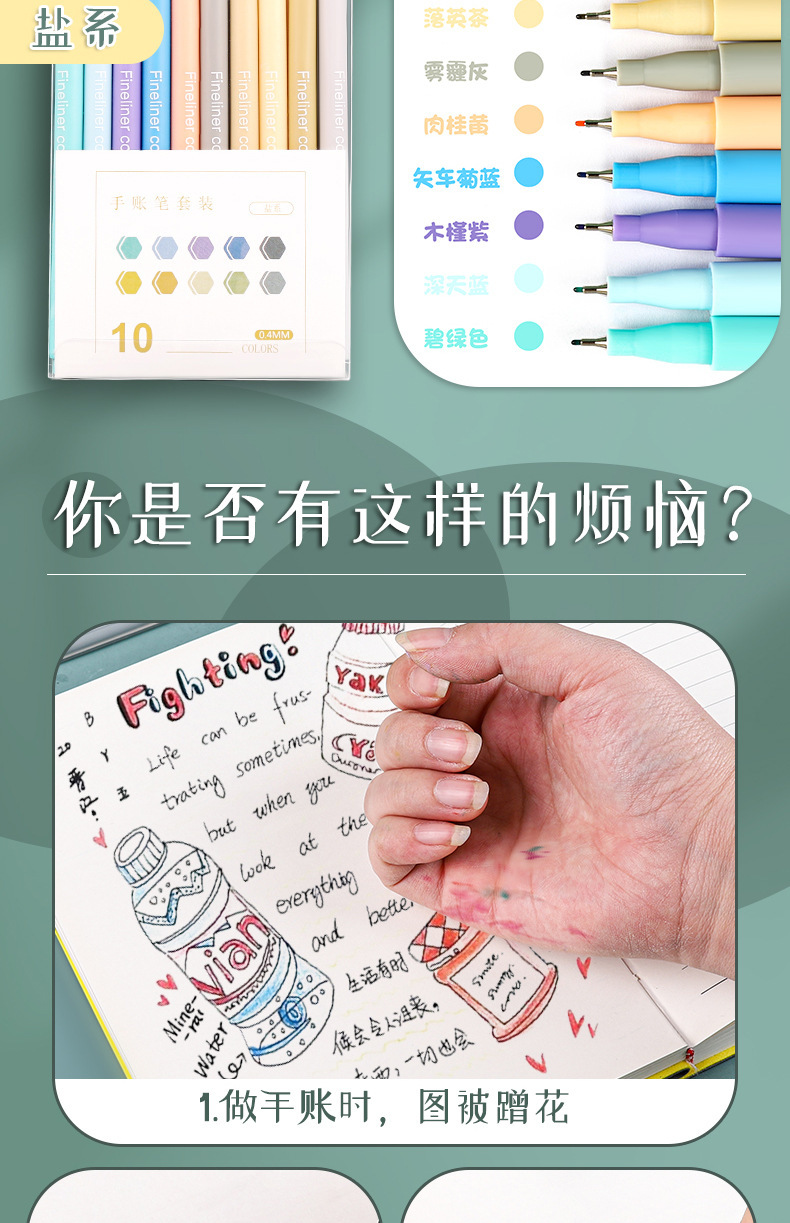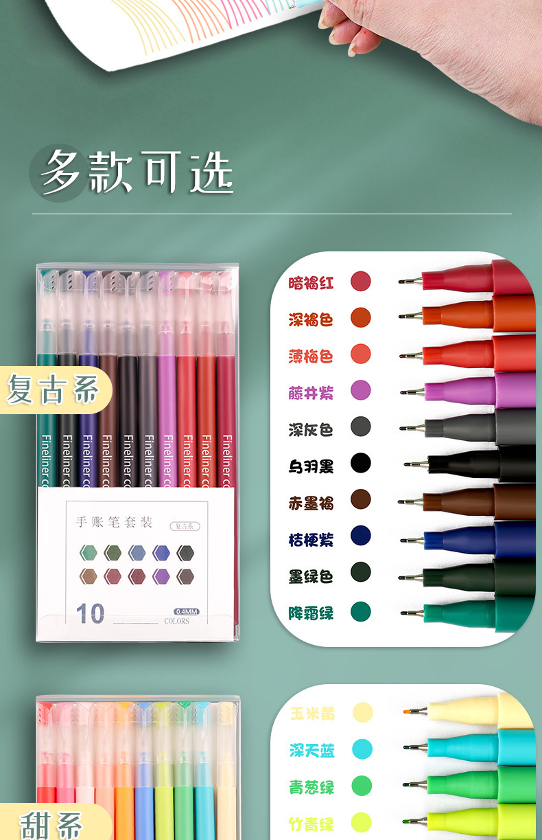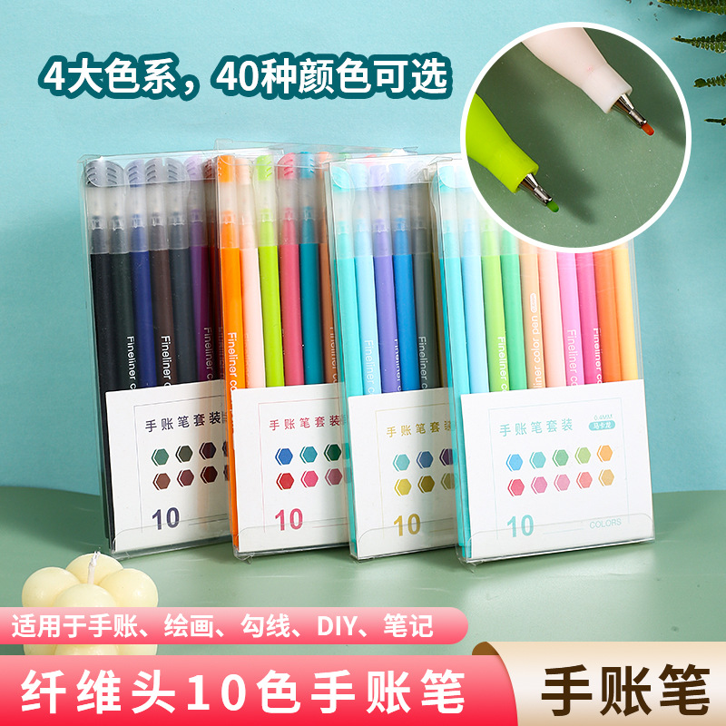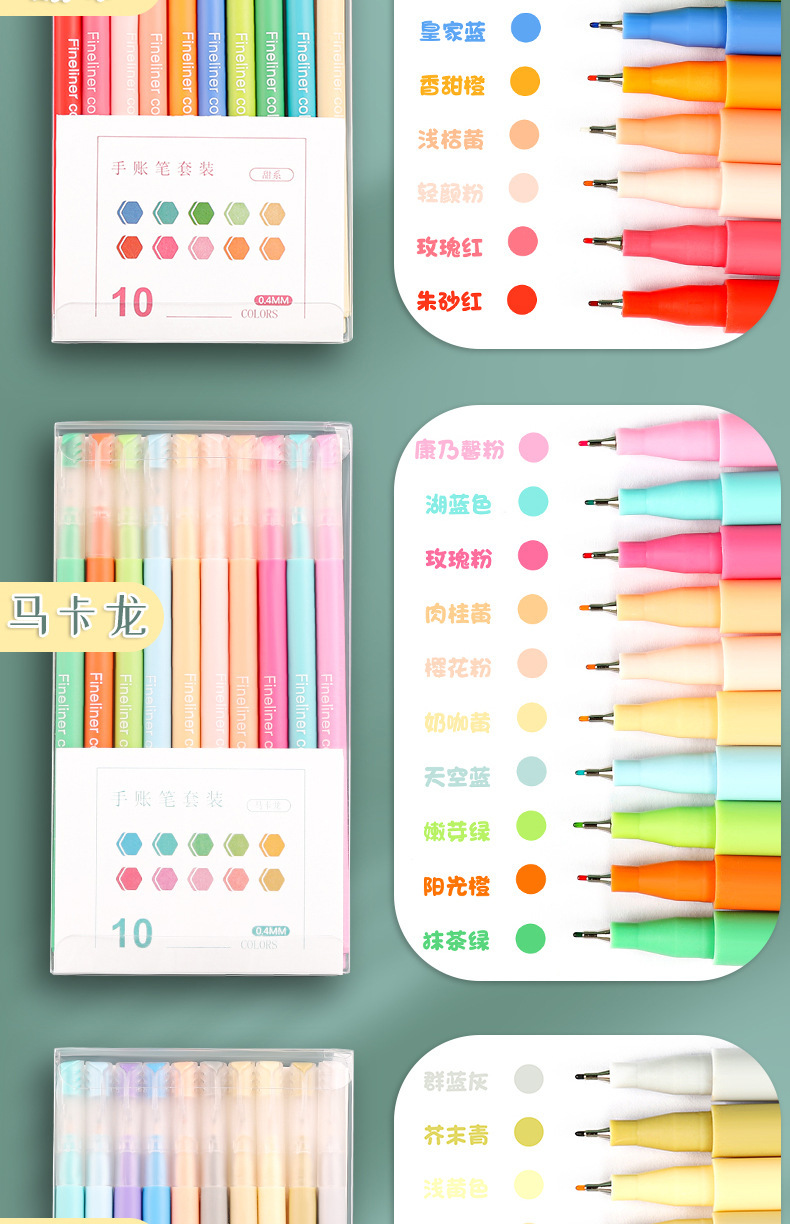 カラー中性ペン高颜値手帳ペン学生専用繊維頭diy手帳女子金マカロン色