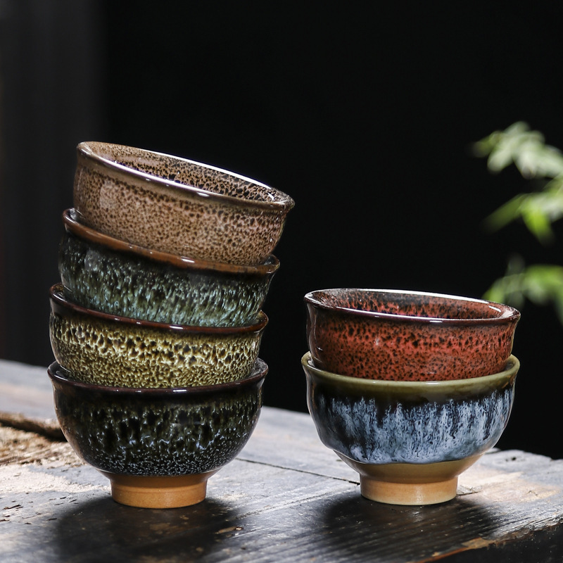 天目の杯の窯は6つの単一のお茶の杯の陶磁器の多彩なお茶の杯を変えます。