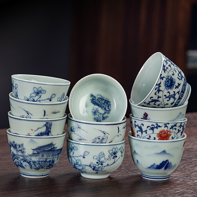 青花茶杯の工夫茶の小さい杯の事務室のお茶の器はお茶の専用の杯を飲みます。