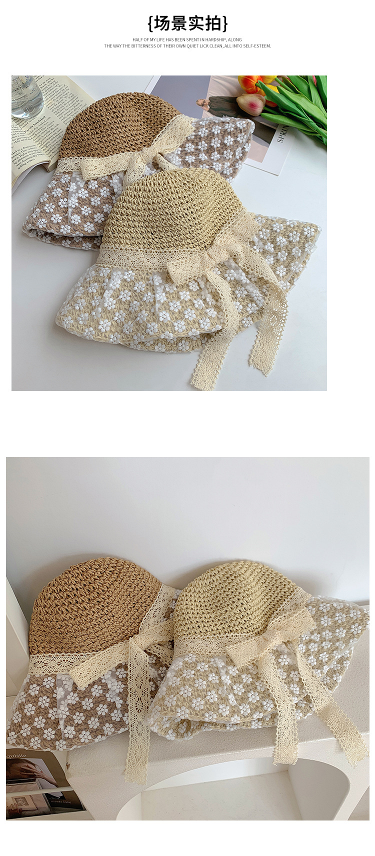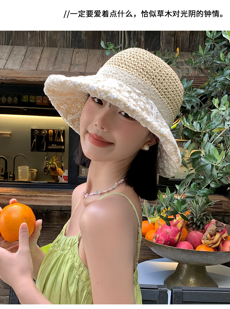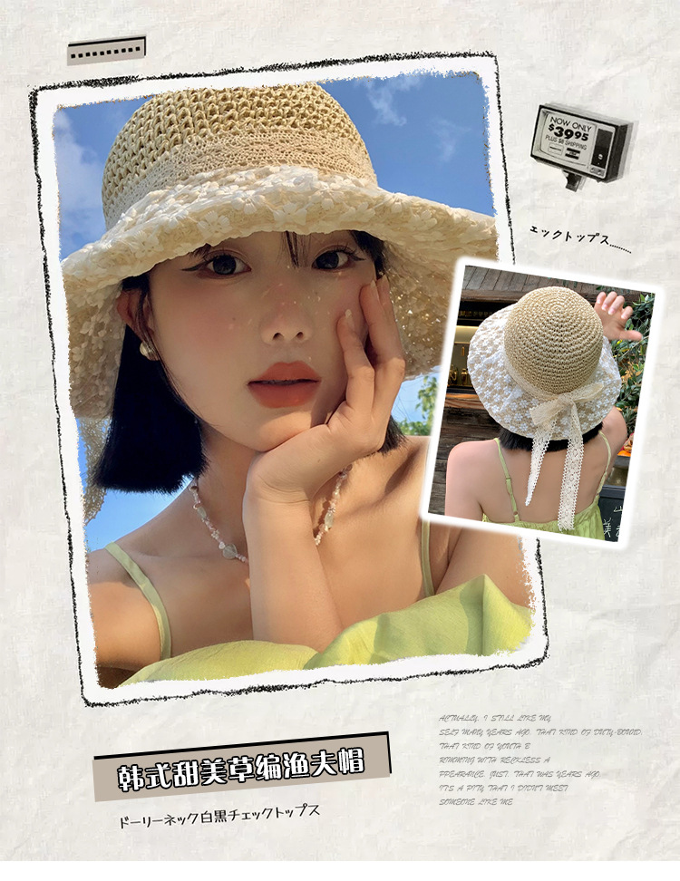 レースの蝶結びの麦わら帽子の女性の夏の通気性の大きいつばの日よけの日焼け止めの帽子の韓国版の海辺の旅行のビーチの帽子