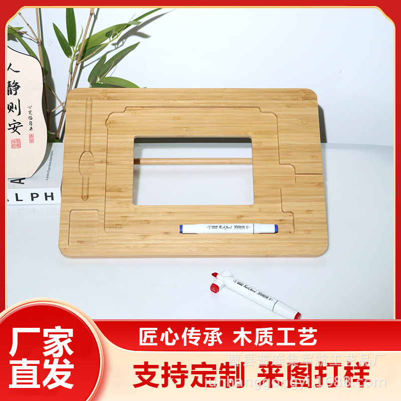 跨境竹制绘图可折叠平板支架带铅笔充电器电缆插槽多功能平板支架