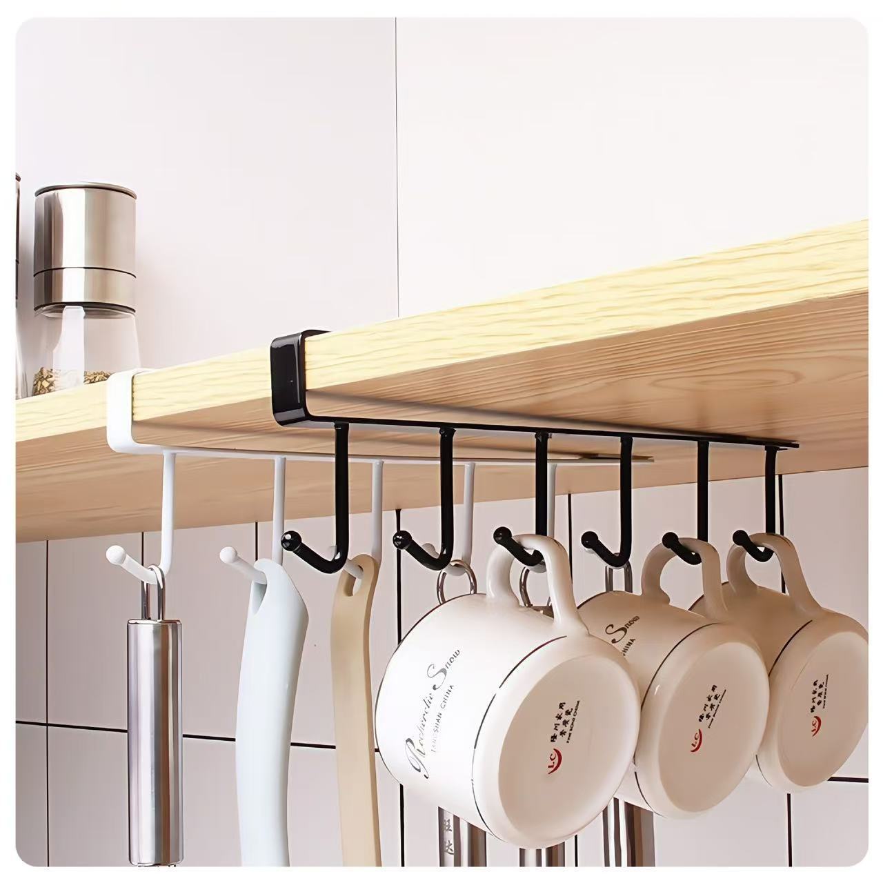 铁艺橱柜下收纳挂架免打孔多功能排钩衣柜置物架神器厨房无痕挂钩