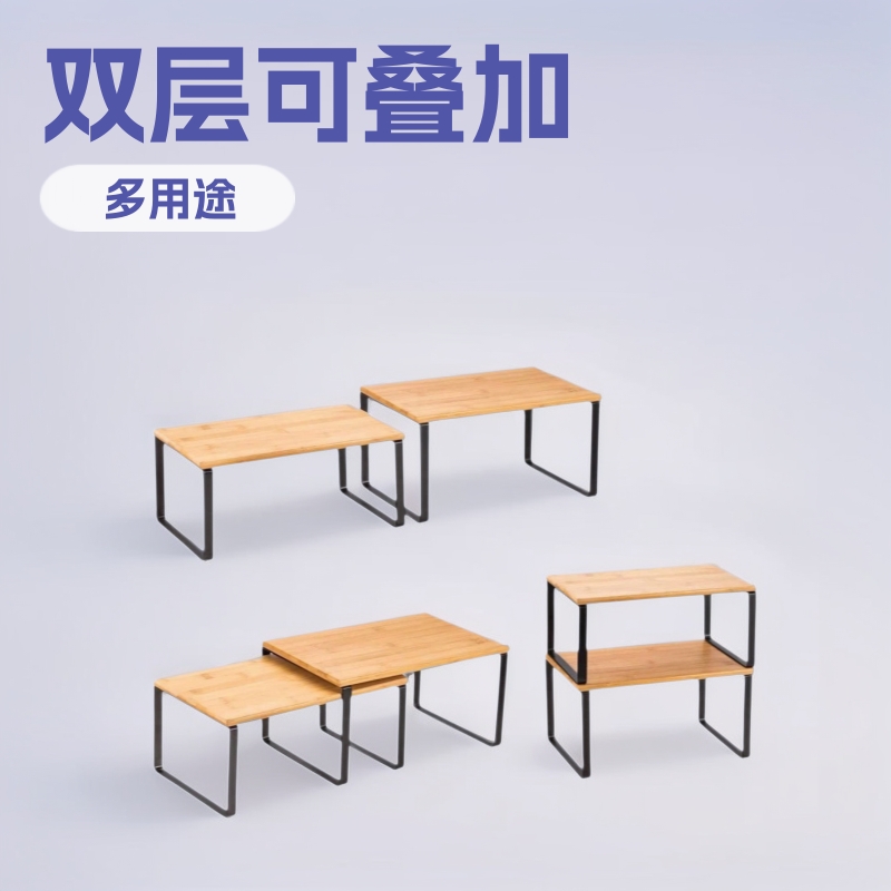 厨房木质铁艺置物架调味品杂物收纳整理架两层可叠加桌面储物架