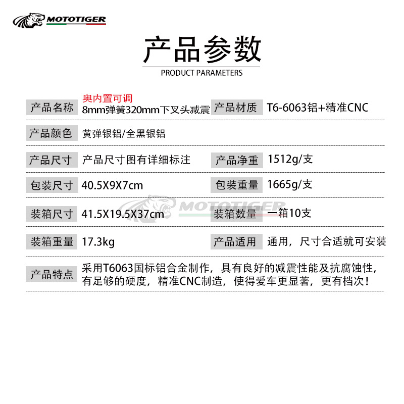 貨物番号 奥内蔵調整可能8センチスプリング320mm下フォークダンパー