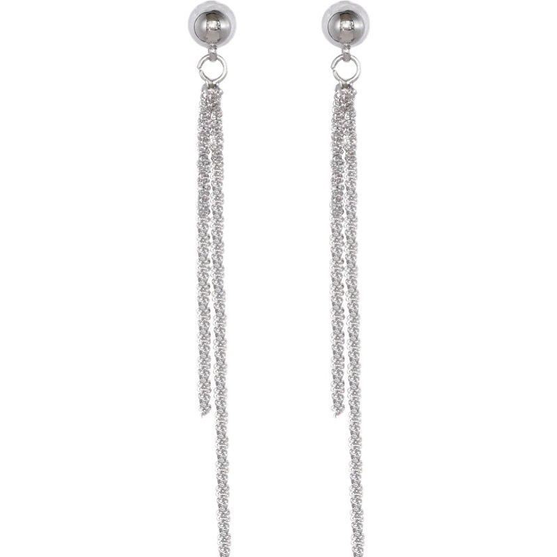 【軟香玉】中国式銀色のロングタイプのフリンジ蚊取り盤耳クリップ無耳洞女性耳釘清冷高級感