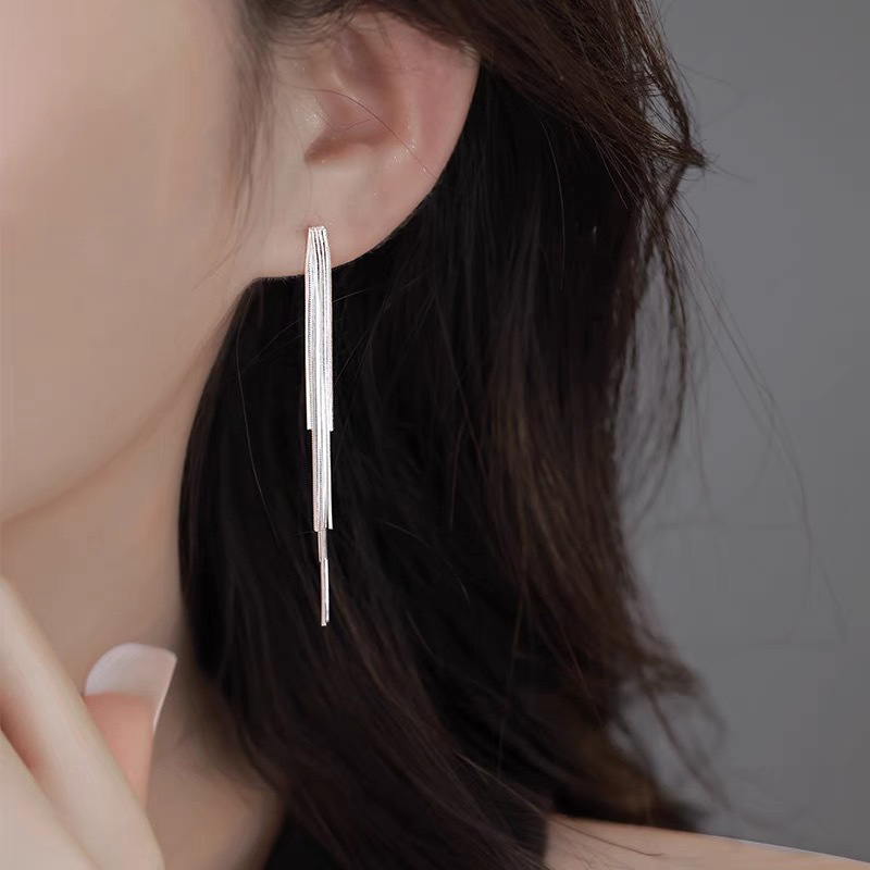 ロングタイプのフリンジの耳に耳の穴がない女性の銀色のイヤリングの蚊の香りの皿の無痛な耳飾りの気質は顔がやせて高級感があります。