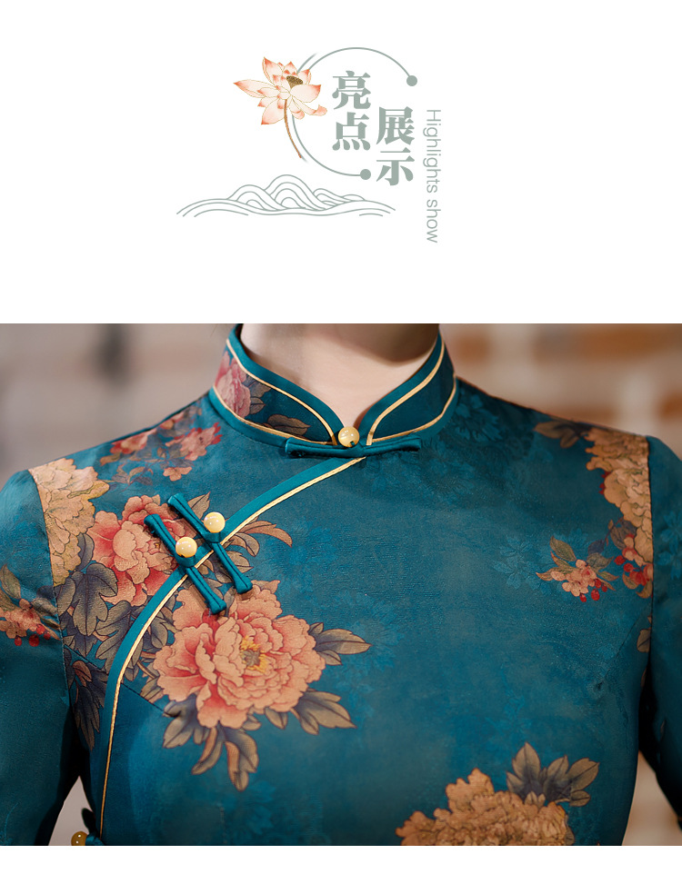ジャカード生地ロングチャイナドレス2025春文学レトロ中国風ママデイリーキャットウォークチャイナドレス
