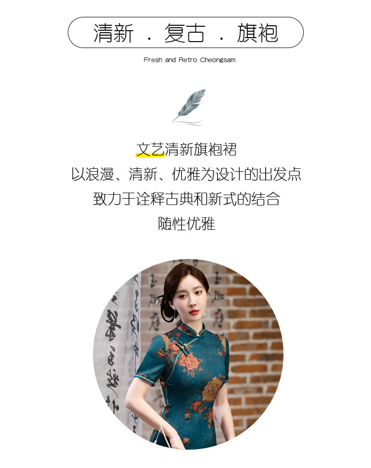 ジャカードチャイナドレス民国風復古素雅プリント国朝風気質優雅半袖改良若いワンピース