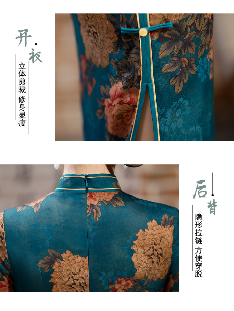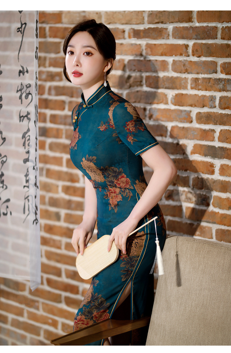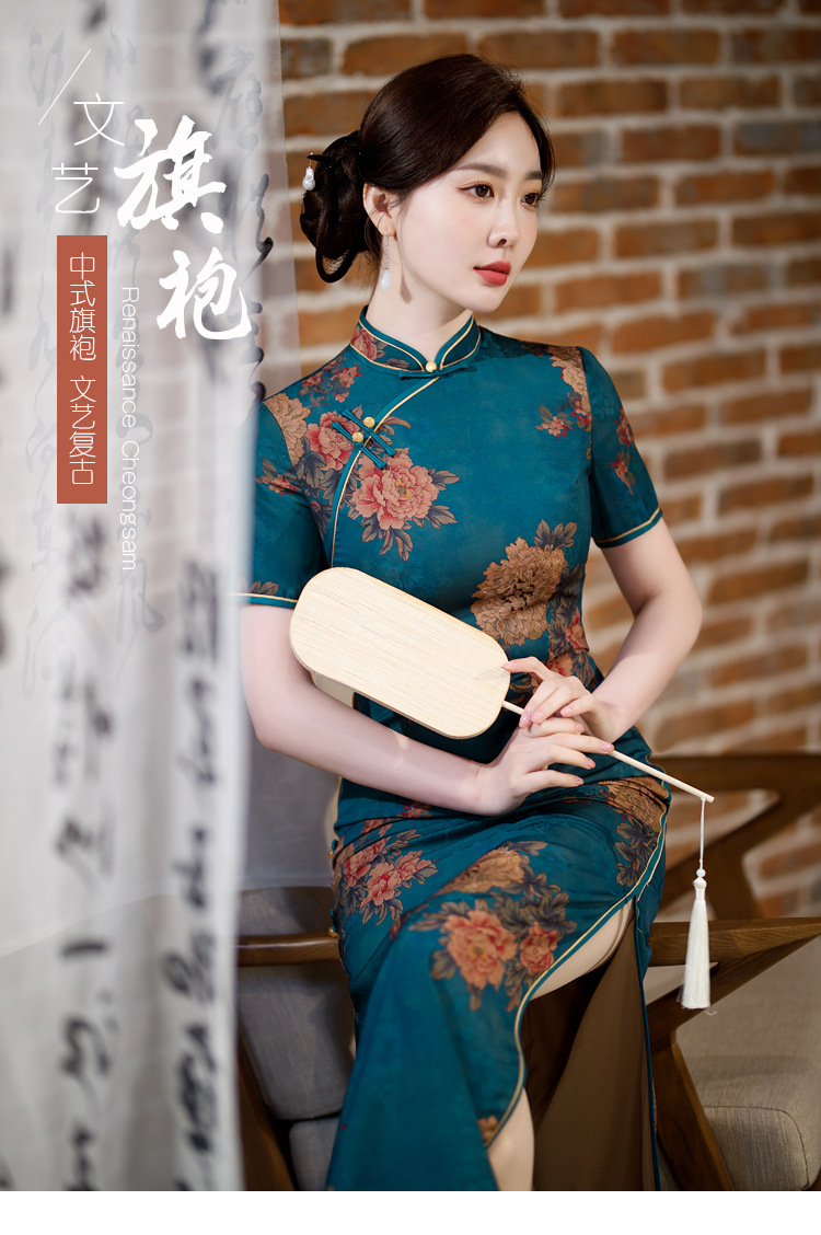 高級2025年旗袍、重厚なシルク、中華民国風旗袍、透け感のある魅惑的な旗袍、レトロなスリット入り旗袍、卸売対応