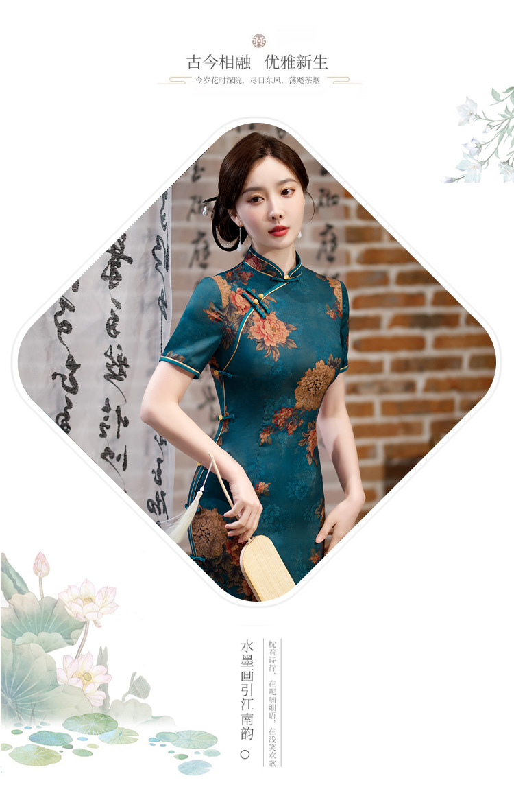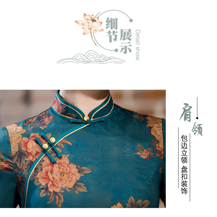チャイナドレス 2025 新スタイル模造香り雲糸ミッドレングスマザーズドレスファッショナブルな大きいサイズのデイリーチャイナドレス