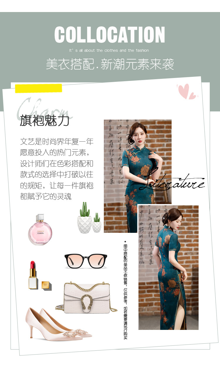 新中国式の国風のチャイナドレス秋冬の新型の中で、中国式のスタンドカラーのチャイナドレスの中で、スリットの雰囲気が優雅です。