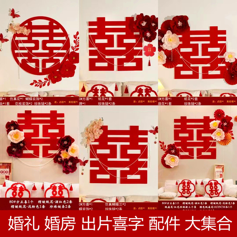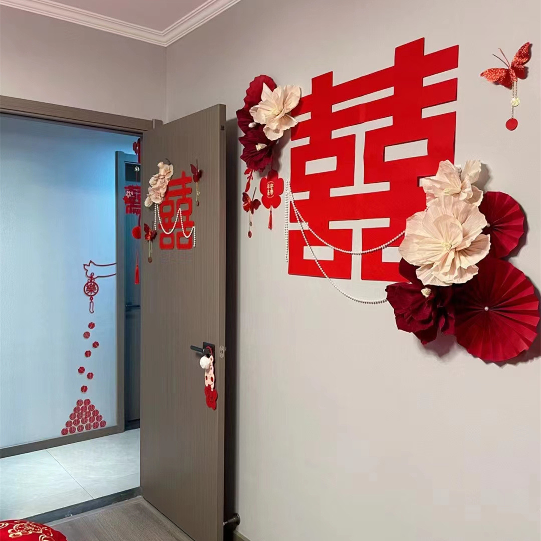 結婚部屋の配置セット結婚喜字扇花結婚式男性側新居客間寝室装飾結婚祝いカラー扇花