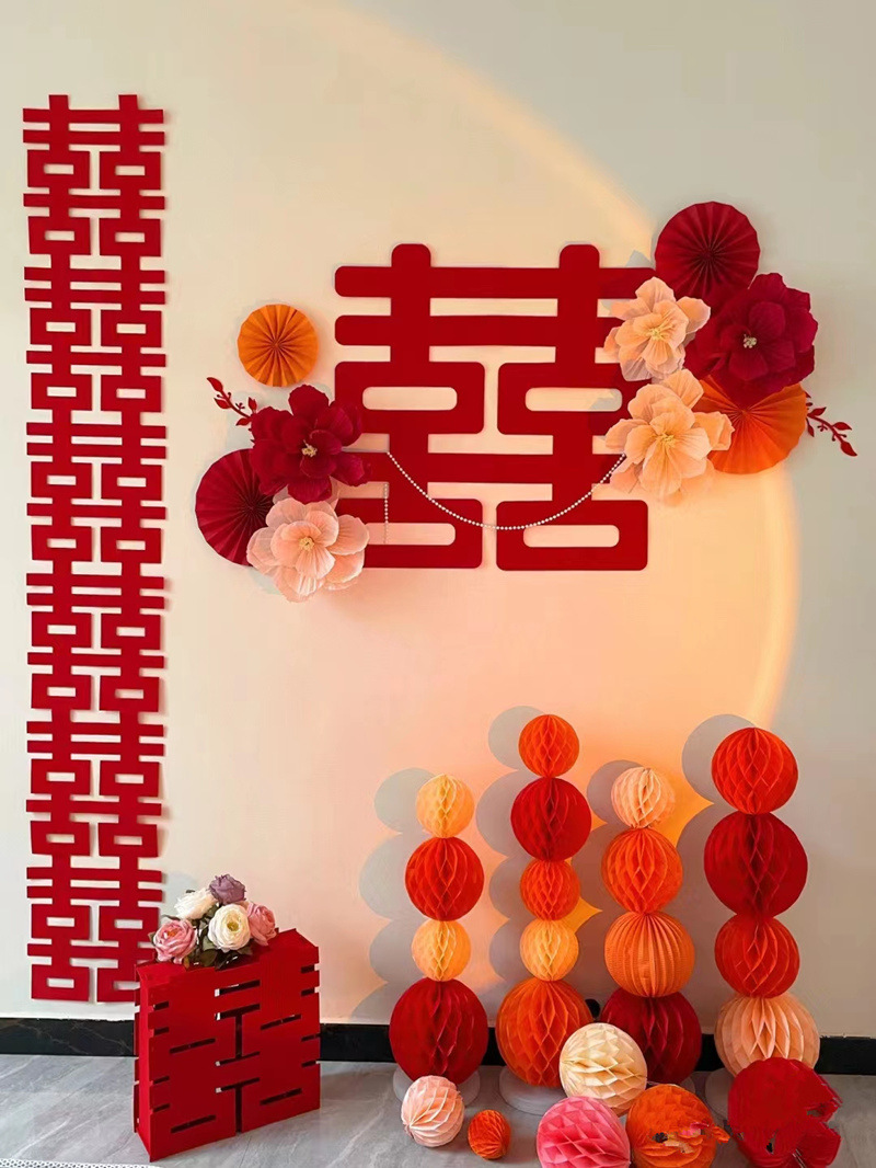 結婚用品の結婚部屋の装飾の大喜字の背景の壁のネットの赤い喜の玄関の窓の花の卸売りの直接販売の結婚式の配置