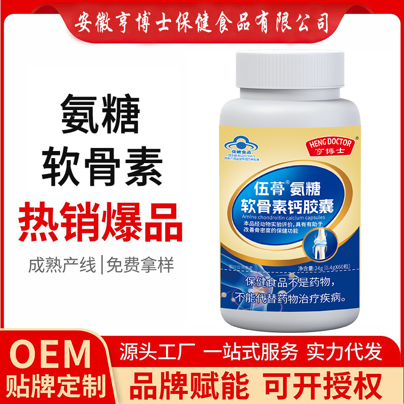グルコサミン・コンドロイチン・カルシウム錠剤卸売 中高年向けカルシウム補給 関節保護 ブルーキャップ食品メーカー OEM オリジナルブランドカスタム製造
