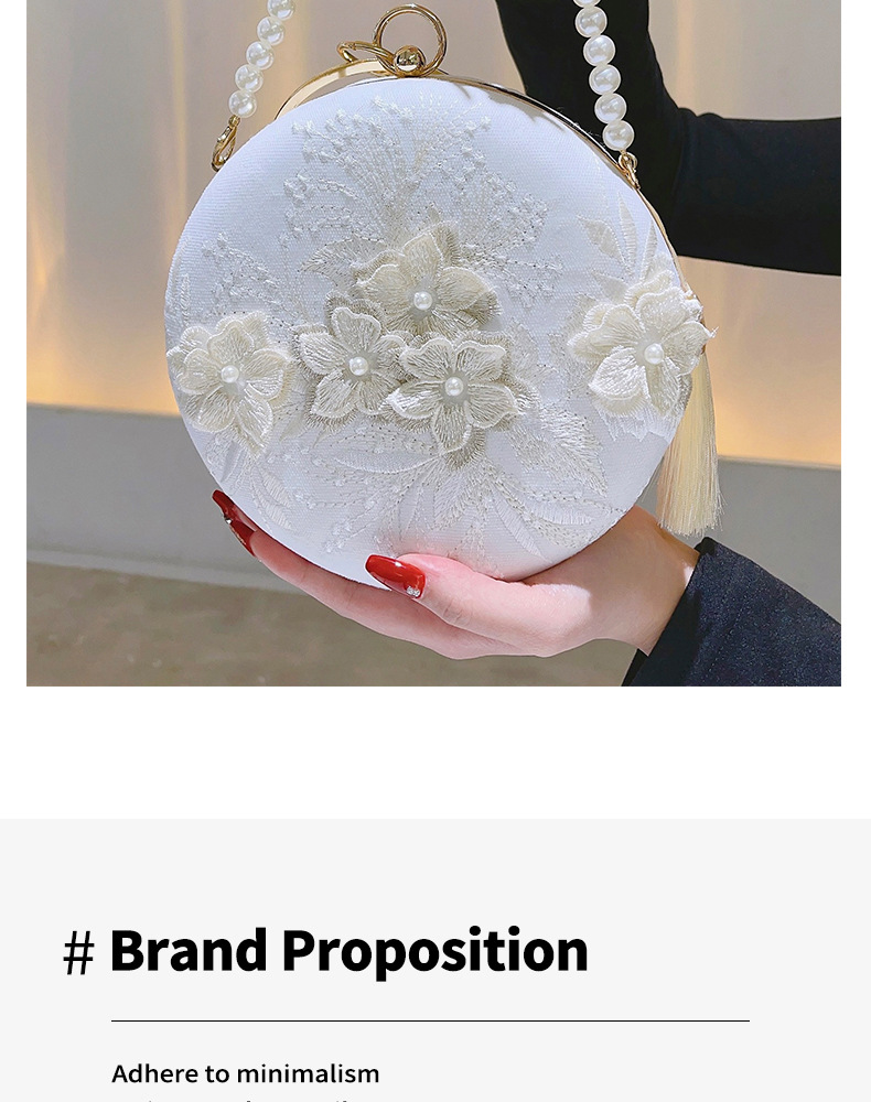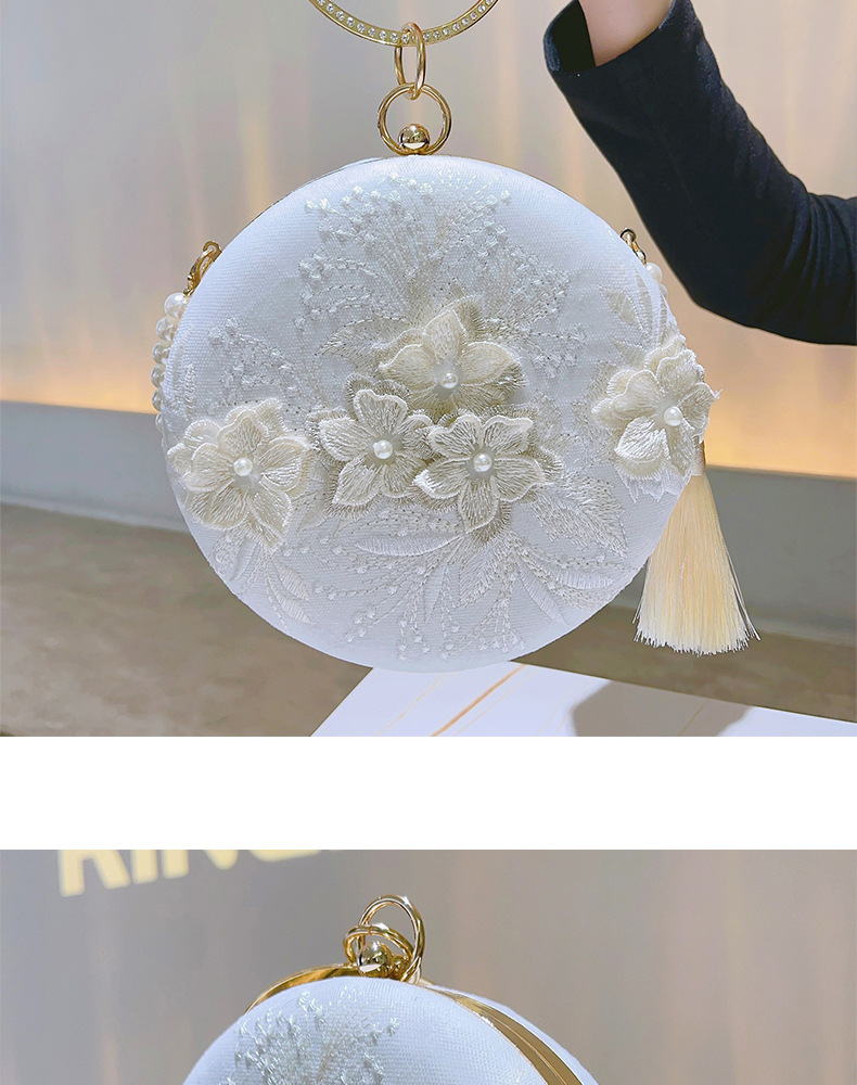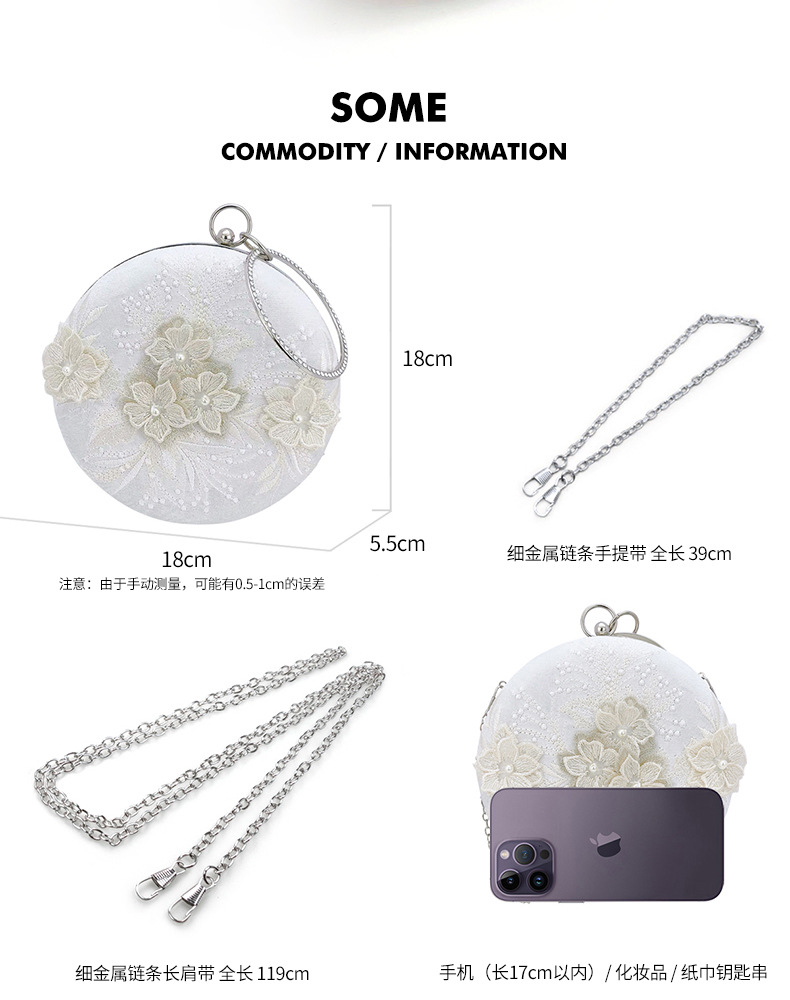 優しい花柄ハンドバッグ、白いサテンのイブニングバッグ、ドレスバッグ、ブライズメイドバッグ、ウェディングバッグ、ハンドバッグ、チャイナドレスバッグ