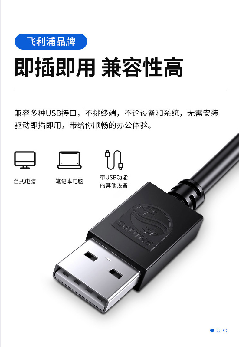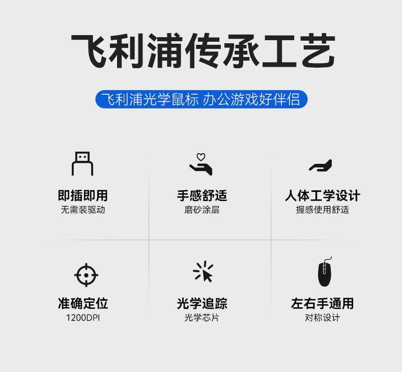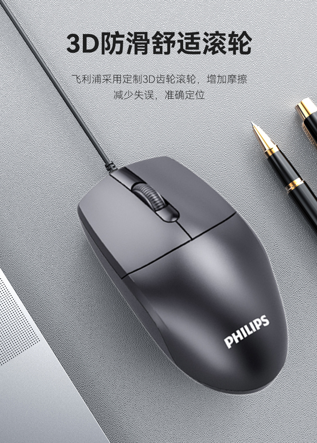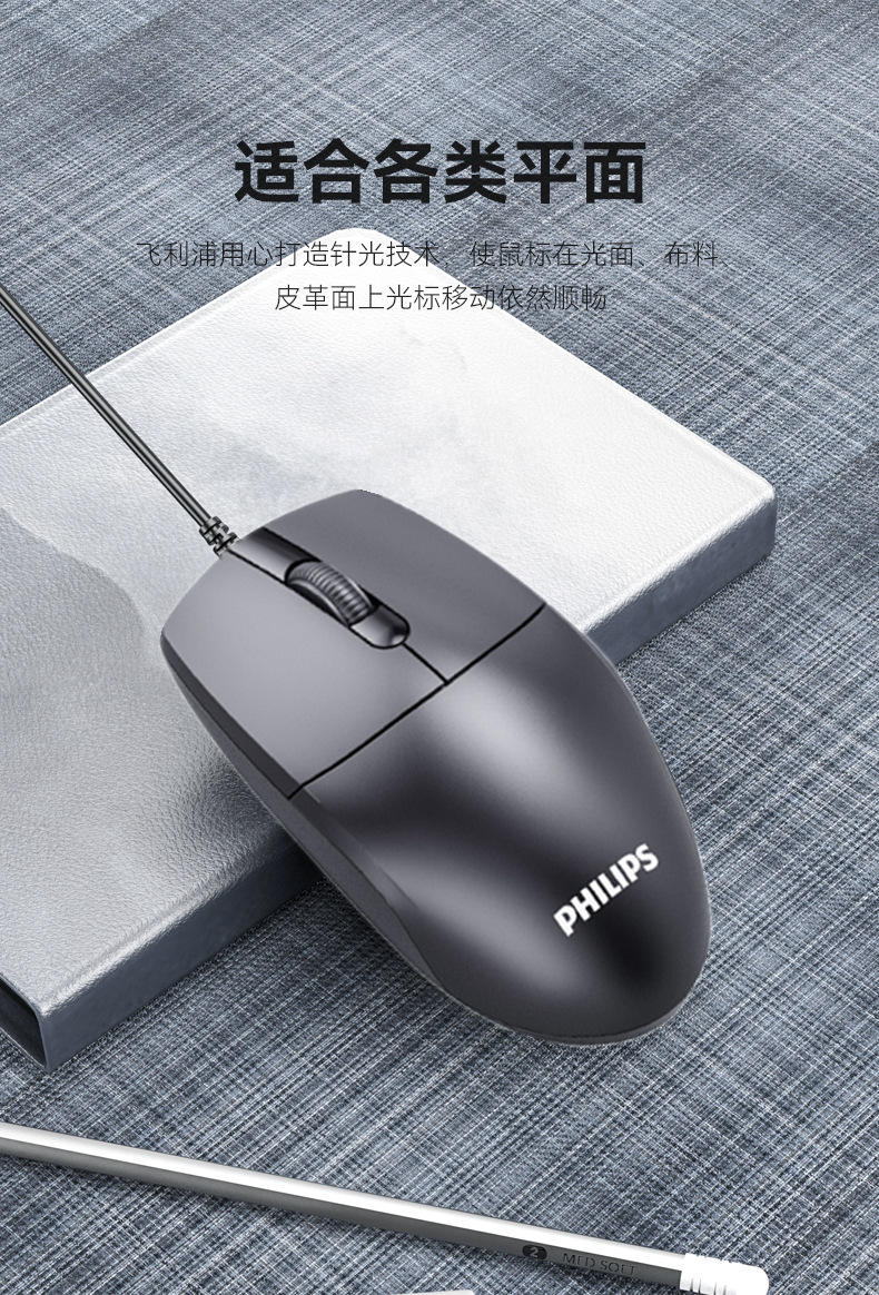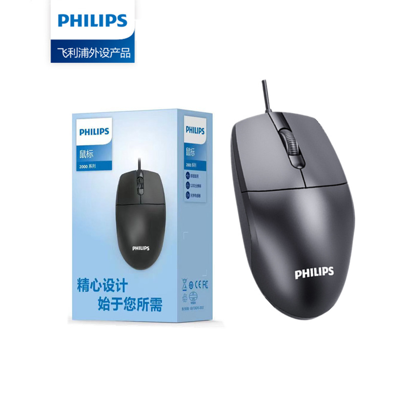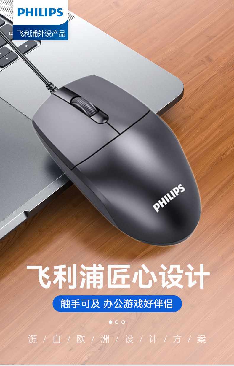 飞利浦有线鼠标笔记本台式机电脑通用USB办公家用简约新款